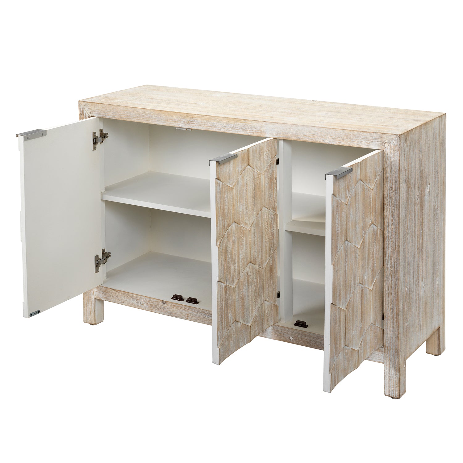 Add a touch of modern elegance to your home with this 3-door storage cabinet. Featuring a hexagonal pattern on its doors, this cabinet is made from fir wood and manufactured wood. Its fixed shelf allows for convenient storage and organization of your household items.