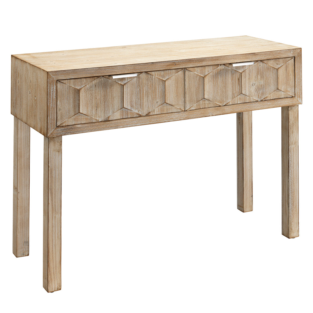 Add a touch of modern elegance to your home with this 2-drawer console table. Featuring a hexagonal pattern, this table is made from fir wood and manufactured wood. Its drawers feature brushed metal hardwware and offer convenient storage of your household items.