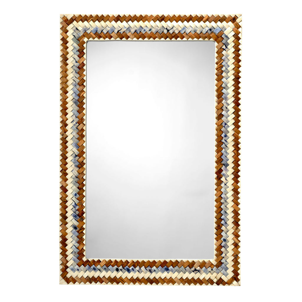 Crafted from natural bone and inlaid with exceptional care, this decorative mirror shimmers with radiant texture and soulful warmth. The intricate craftsmanship highlights the natural variations of bone in cream, blue and medium brown. It transforms any wall into a work of light and balance, infusing entryways, living spaces, or serene retreats with understated luxury and a timeless, handcrafted charm that feels both global and grounded.