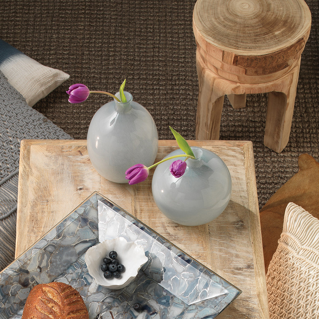 This set of sophisticated blown glass decorative vases are the perfect sculptural accent to any space. Graceful lines paired with an elegant white or grey color create stunning vessels that are the perfect décor addition.