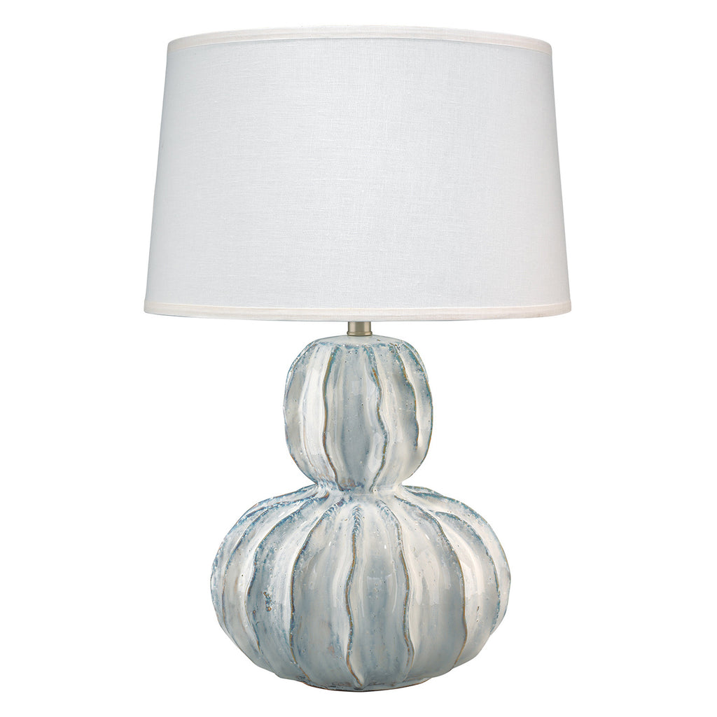 As if unearthed from the sea floor, the Jamie Young Oceane gourd table lamp exhibits textures and colors from a marine inspired environment. Bold ceramic surfaces are balanced by subdued colors of white and blue, creating the perfect piece that is right at home in any coastal space.