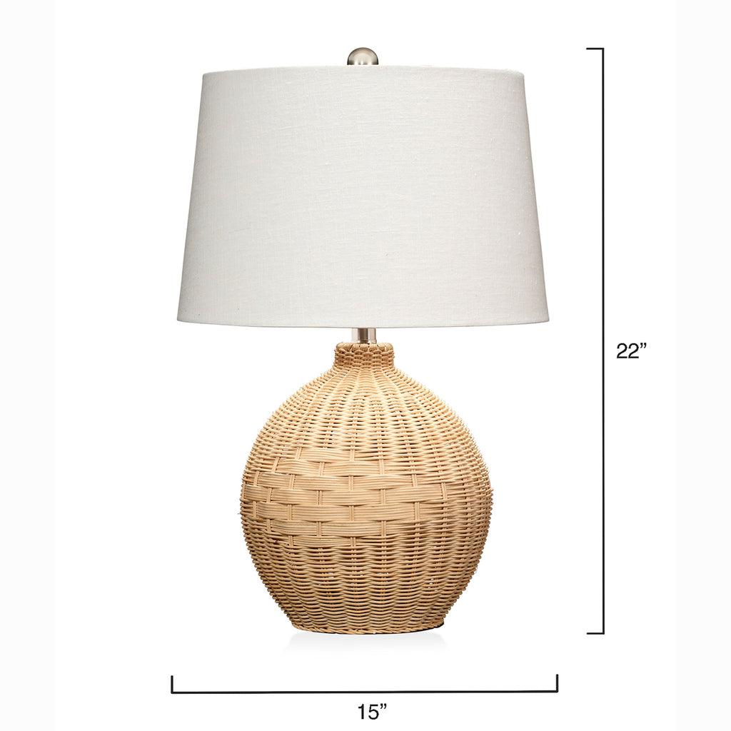 As light and airy as the ocean breezes that perfume Cape cities around the world, the globally inspired Palma Rattan Table Lamp pleasingly round base is handcrafted of sustainably harvested rattan, and is topped with a rolled edge tapered shade in 100% linen and a coordinating ball finial. An exceptional choice to light today’s contemporary casual interiors, place on a console or nightstand for an instant room uplift!