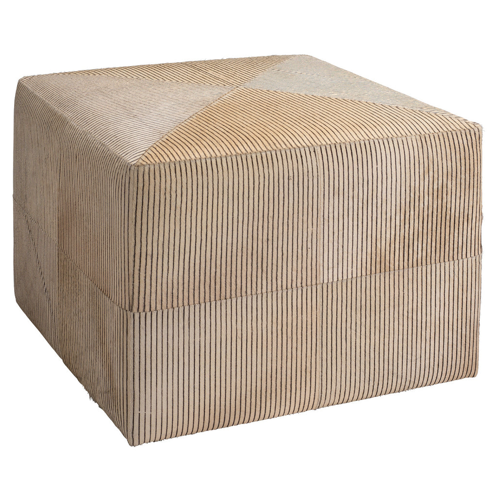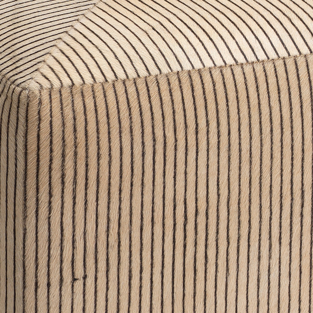 Crafted of cream and black hand selected hides, these ottomans are great for rustic, modern, lodge, urban or country environments. Available in two sizes, no two are identical and each adds great natural textures to the home.