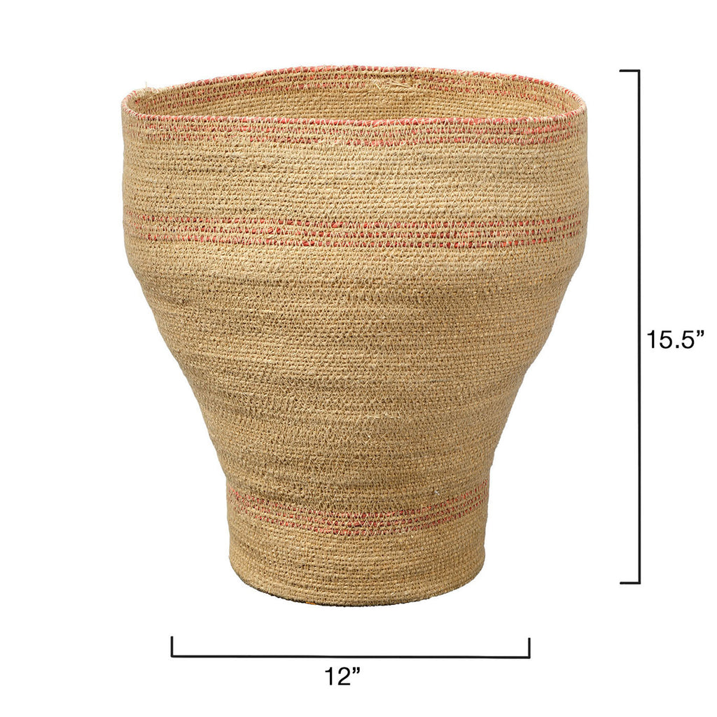 Expertly crafted from finely woven natural seagrass, this lovely decorative basket adds a serene beauty to modern interiors from coastline to countryside. Distinguished by their unstructured shape and a soft neutral palette enhanced with colored accents, they're useful in any room. Fill one with fluffy rolled towels to elevate a spa-inspired bath, with kindling beside the hearth, or with toys for a stylish storage solution. Each is completely handcrafted, and as such no two will be identical.