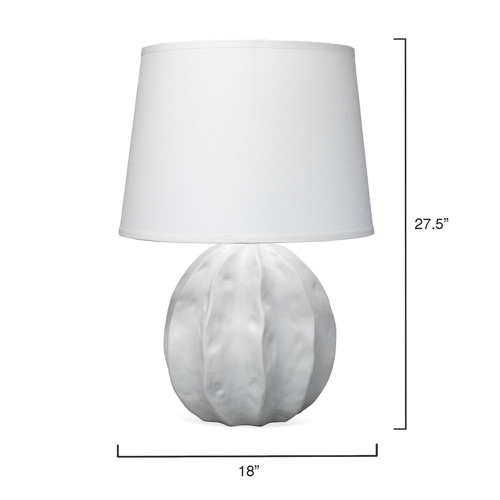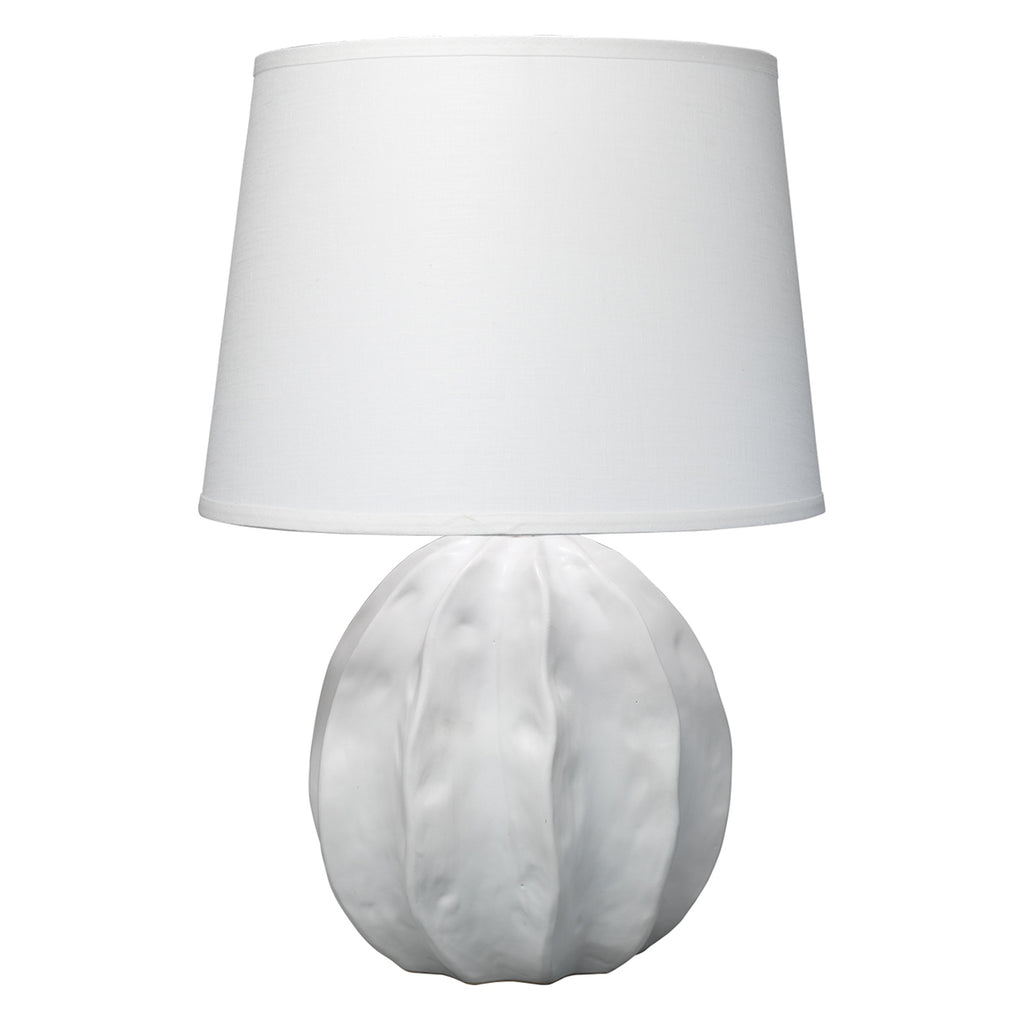 The soft organic shape and matte smooth feel of the Jamie Young Urchin Table Lamp bears a close connection to the seaside and coast.