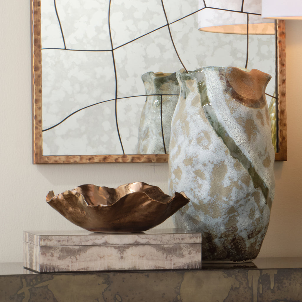 The inspired-by-nature patterns that embellish the exteriors of this box are elegantly and beautifully finished on all sides with layers of hand-applied lacquer. Each box is artisan crafted and opens easily with strong metal hinges. Once opened they reveal ample storage for small treasures like watches or jewelry, or to stylishly stash necessities from remotes to charging cords. The combination of natural motifs, fine craftsmanship, and functional design ensures the box serves as both a decorative accent and a useful home accessory.
