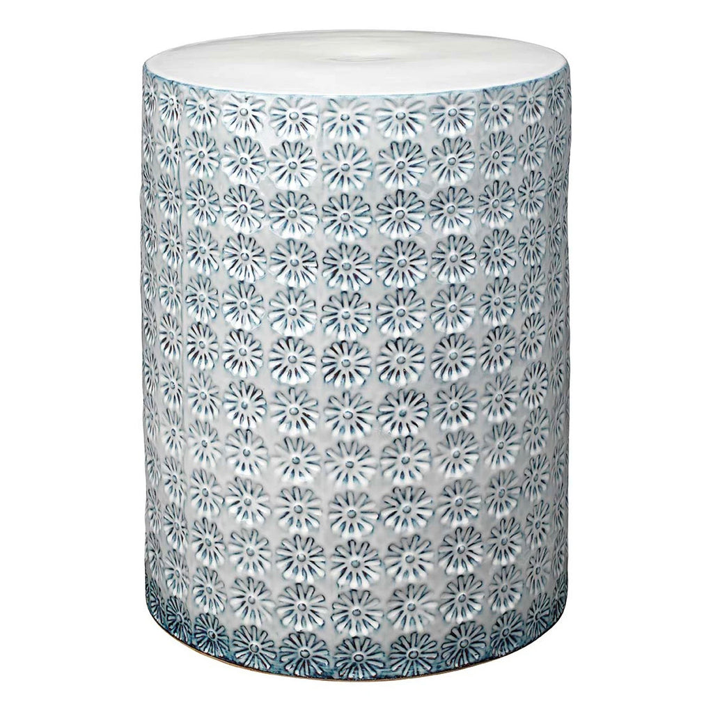 The Jamie Young Wildflower side table is a patterned ceramic side table that adds texture and color to your space. Finished with a reactive glaze, the variation in its coloring adds depth and decoration to an otherwise simple standalone piece. Table is organic, handmade and hand fired. To be used as a side table only, not suitable for seating.
