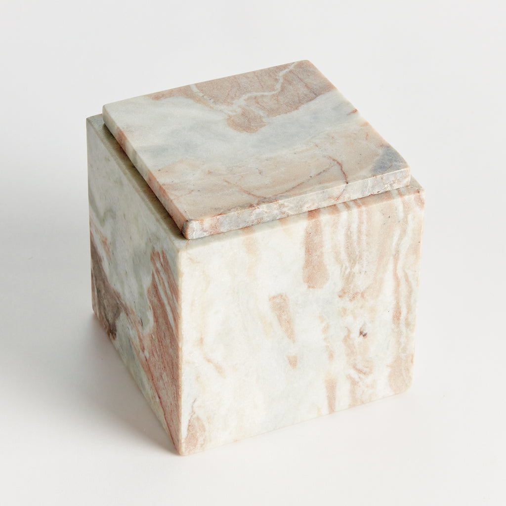 Honed to a semi-matte finish, this stunning marble is specifically known for its unique dark brown to light brown broad lines. The clay minerals found in this particular marble are what gives our round lidded box this one-of-a-kind brown veining. A beautiful accent atop home office desk, bookshelf or entry console.