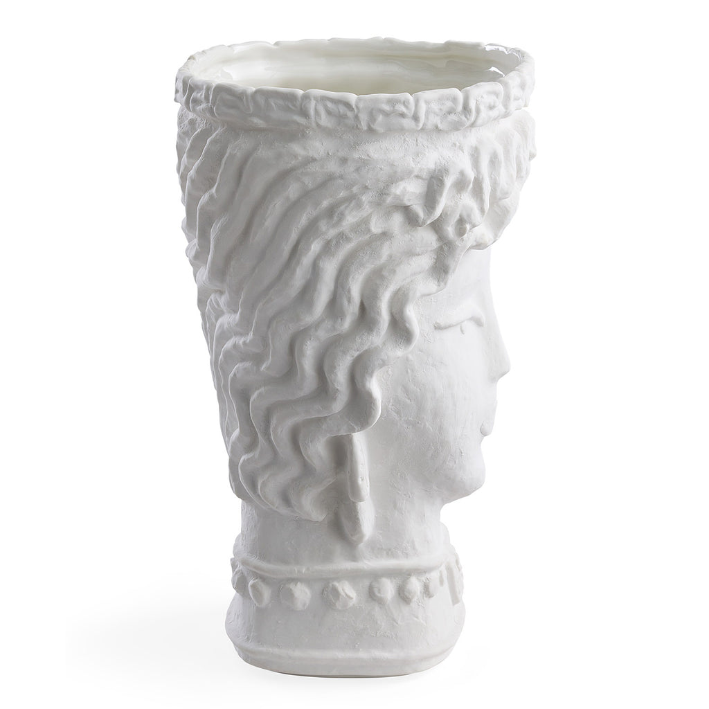 Straight off a 1940s film set, our cinematic goddess is crafted from haute couture porcelain finished with a matte glaze. Large and in charge on a pedestal, she's the perfect vessel for graphic greens. A showstopper even sans fronds, Aphrodite possesses the star quality to anchor a colorful table or console 'scape.