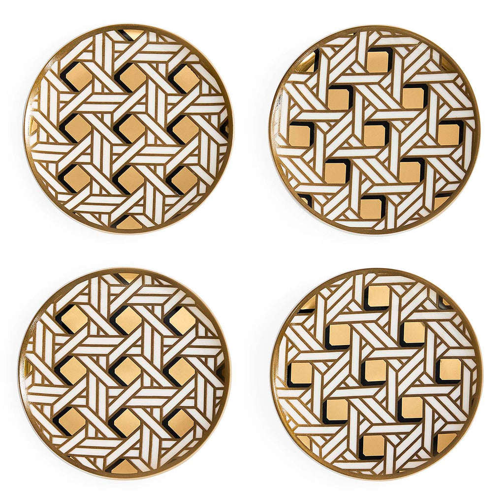 The jolt of preppy pattern your tabletop needs. Featuring our modern basket weave pattern in classic black and white with a glimmering gold backdrop. Crafted from high-fired porcelain, each set is packaged in a nifty gift box. The perfect hostess present (or pick-me-up for yourself).