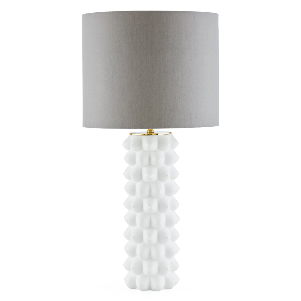 The Georgia Tall Table Lamp is a 360-degree celebration of provocation, wrapped in idealized form topped with a grey poplin shade. Inspired by American artist Georgia O'Keeffe, wife and muse to Alfred Stieglitz.