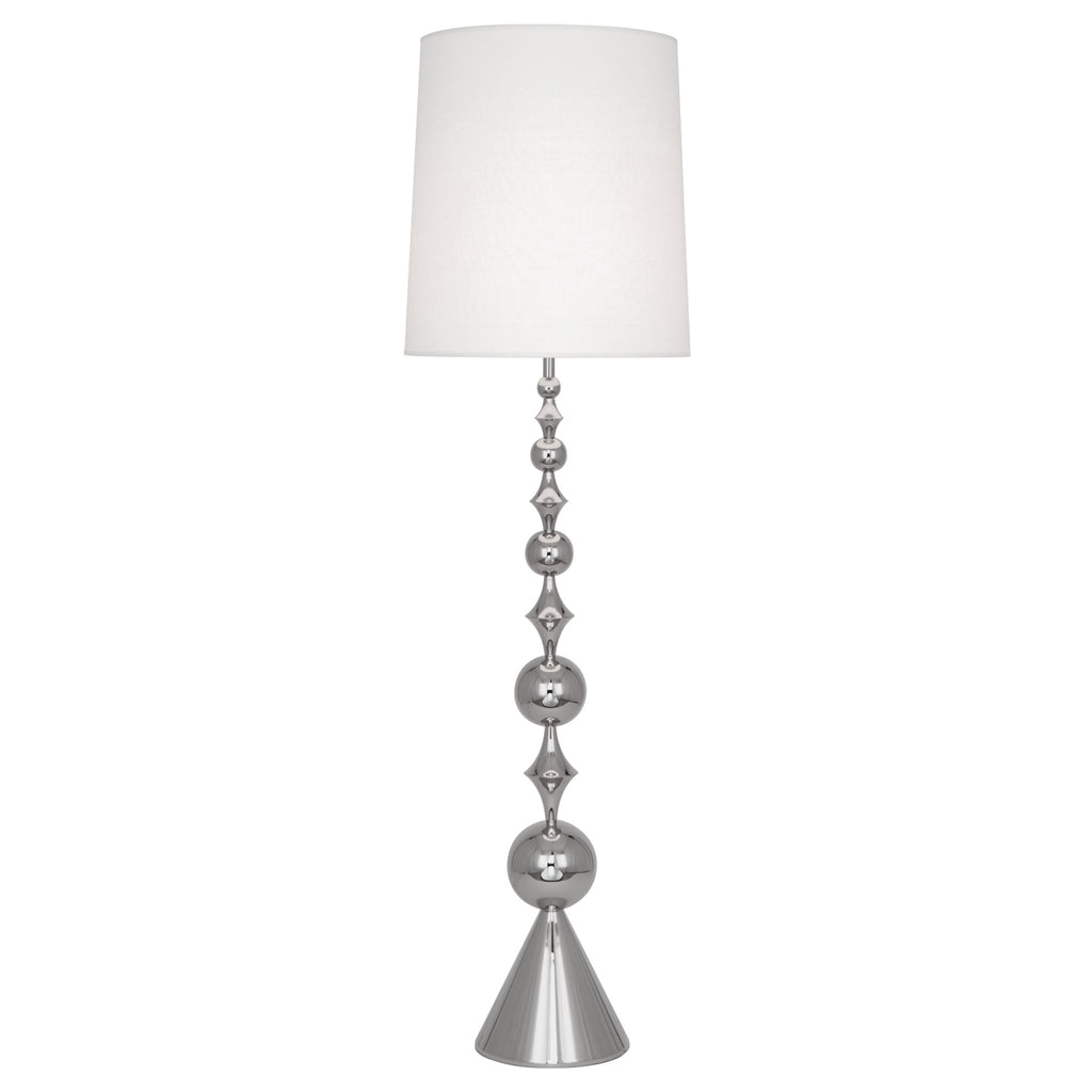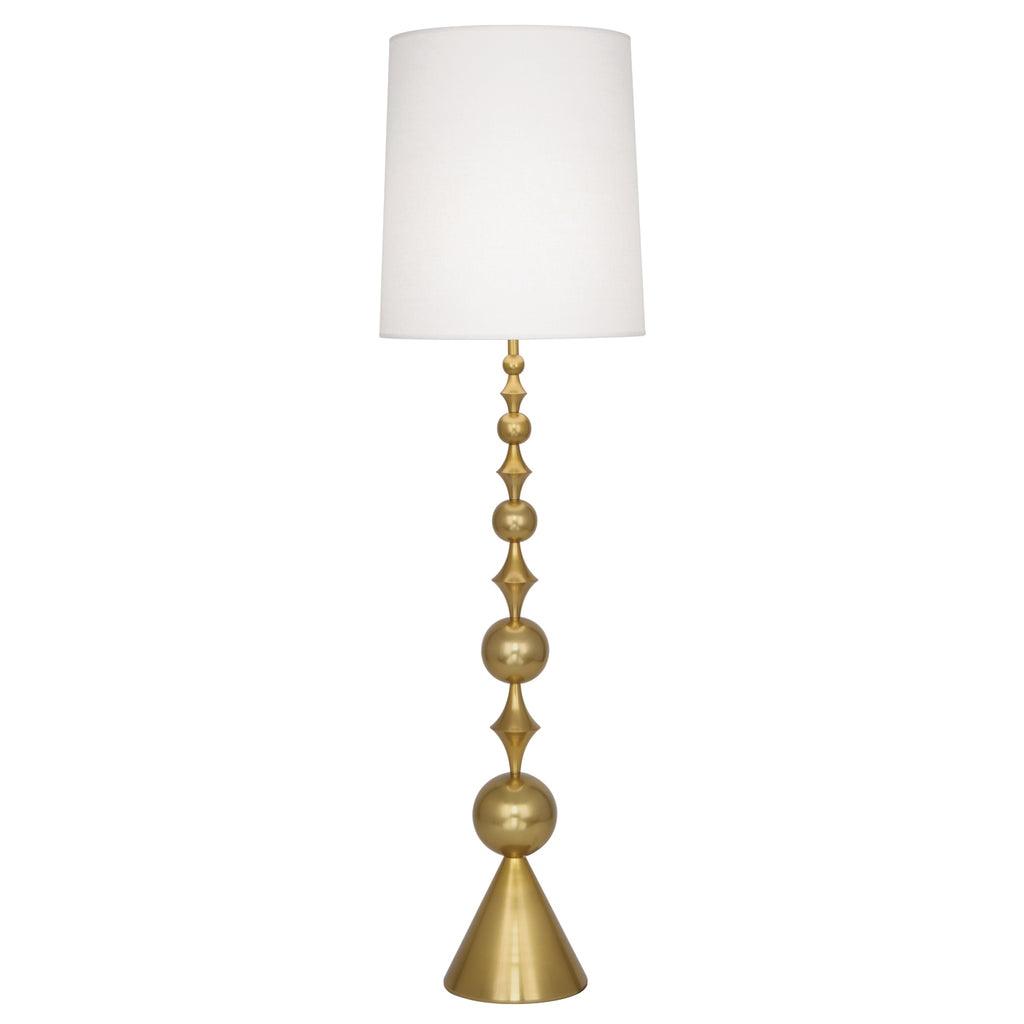 The Jonathan Adler Harlequin Floor Lamp is our pared down take on a tall and spindly candlestick lamp. It adds generous height to a room, and is an ideal space-saver for a smaller sanctuary. A simple diamond and sphere vocabulary offers a hint of Mid-Century Modernism, while the metallic finishes are ultra-glamorous.
