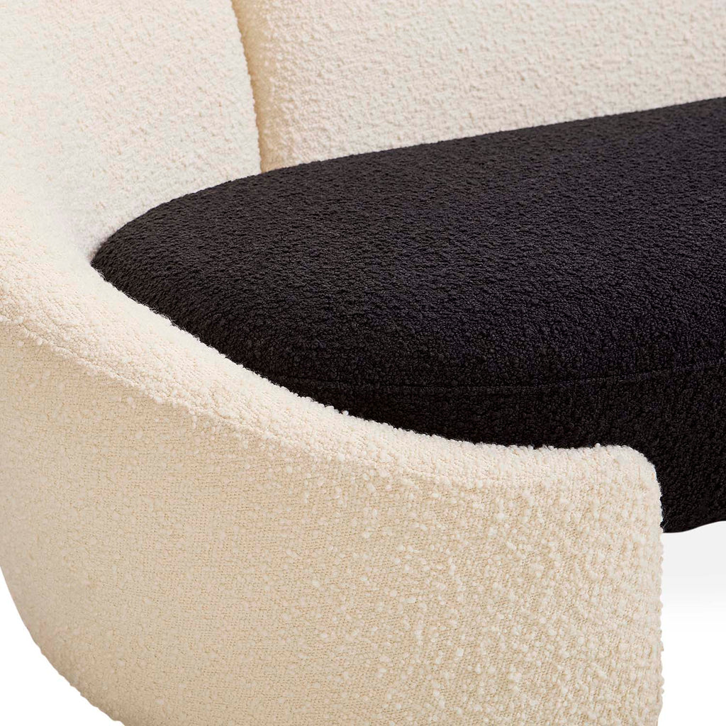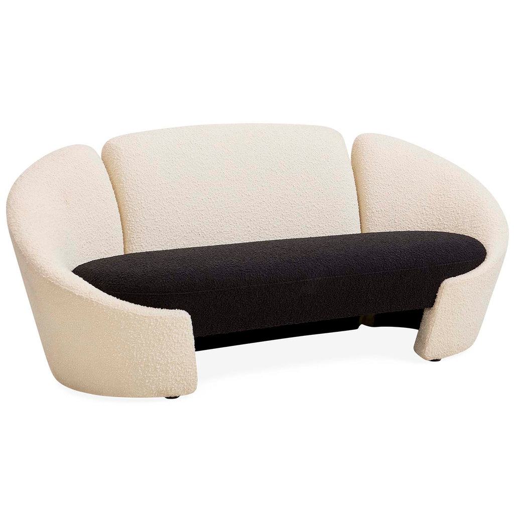 Our Marais seating serves the perfect pop of black and white—familiar but fresh, chic, and graphique. Sized for smaller spaces, our Marias apartment sofa features a classic capsule silhouette with intriguingly sculptural splits upholstered in two-toned bouclé. Think cozy couture, but also think objet d'art. Modish in a Brooklyn Brownstone parlor, fierce in a fab fashionista's pied-à-terre.