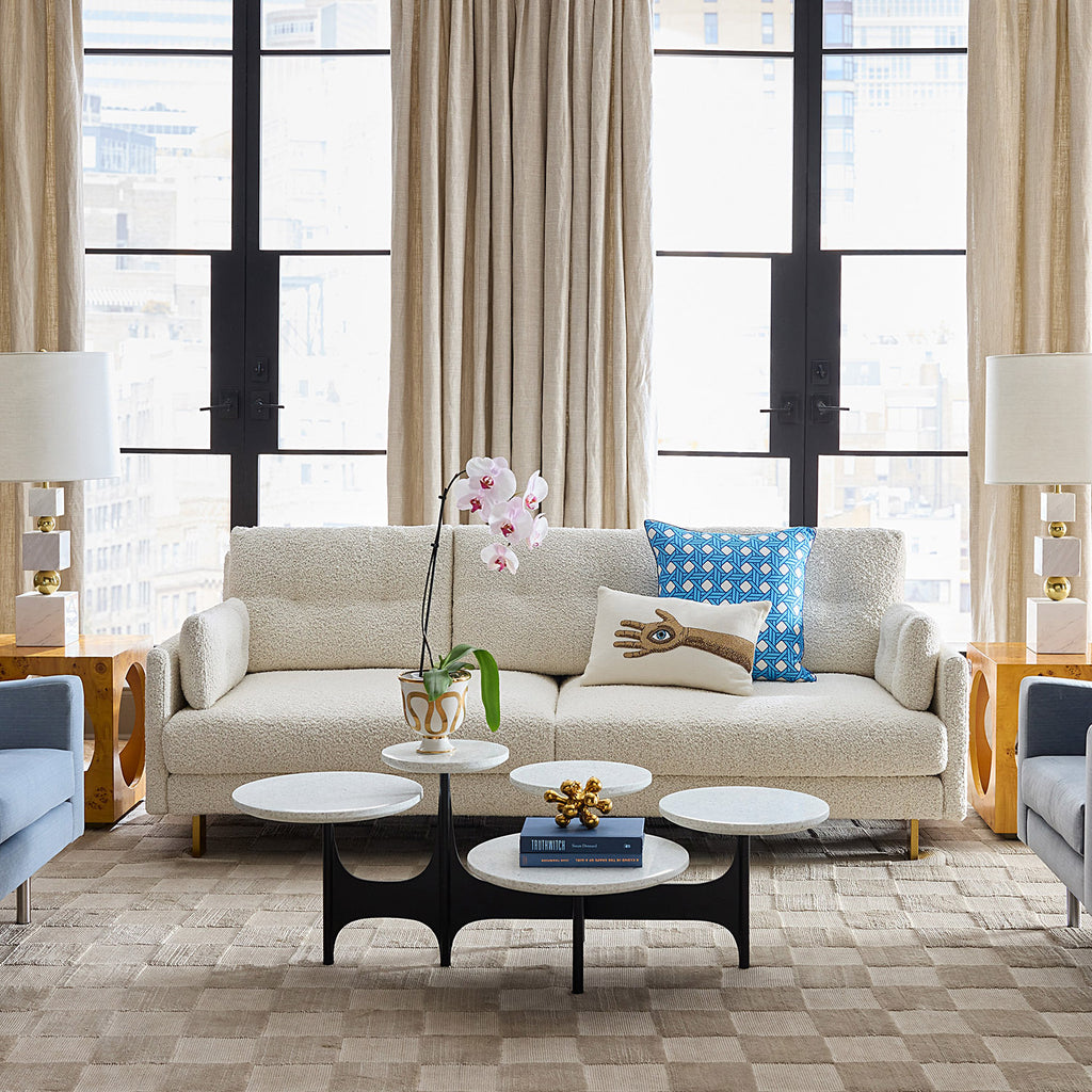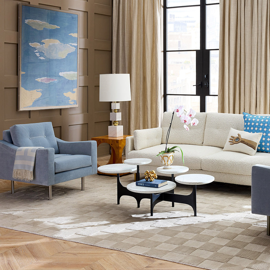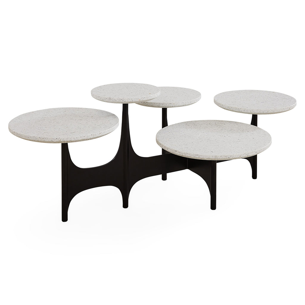 Is it art? Is it a cocktail table? Both. Featuring five terrazzo tabletops and a sculptural blackened steel base inspired by Oscar Niemeyer's Brasília architecture, our Milano Cocktail Table solves the perennial problem: should I 'scape my cocktail table or no? Sculptural and intriguing sans objets, Milano requires zero styling and will still be the chicest moment in the room.