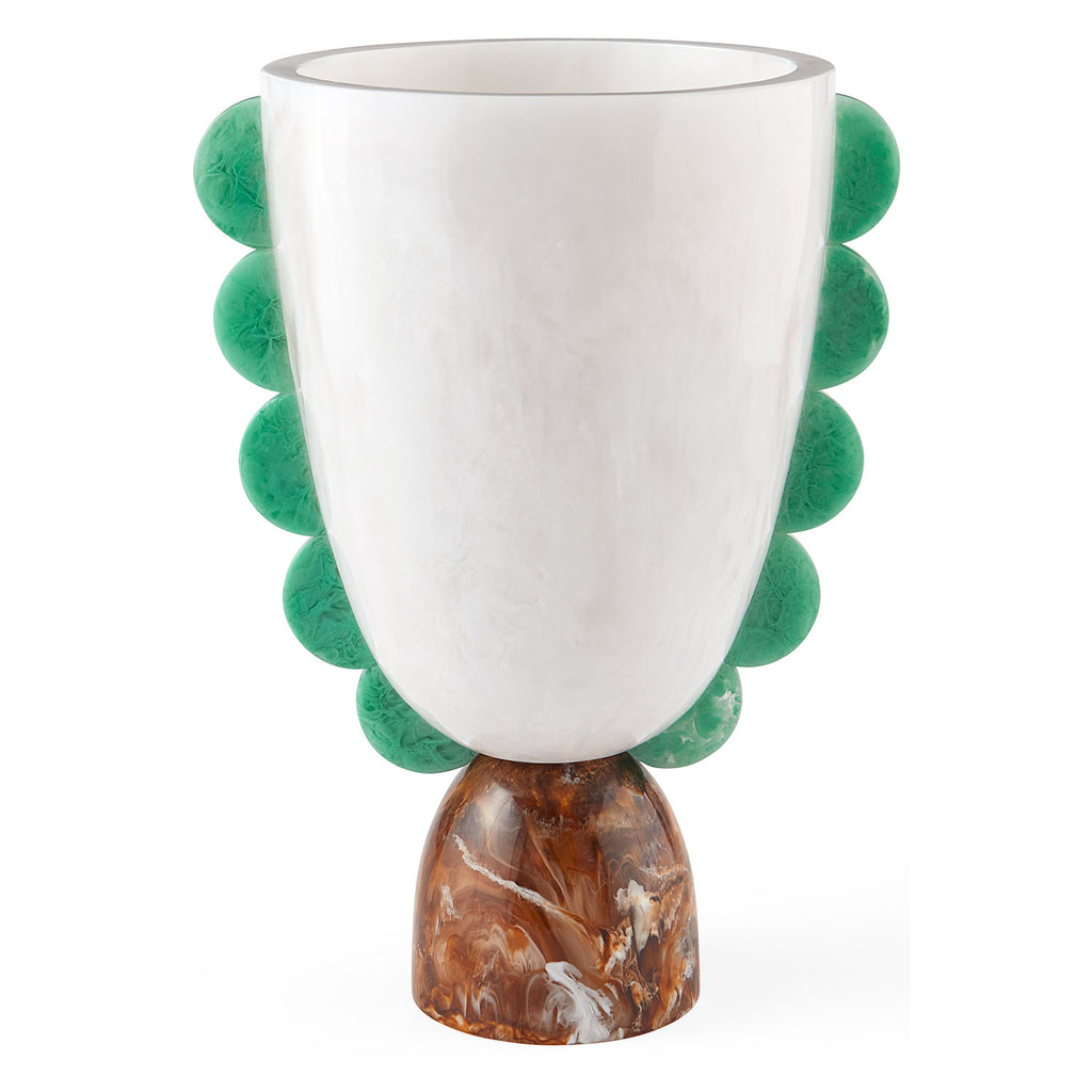Featuring swirling white, cognac, and celadon tones, our Mustique Scalloped Urn is an oversized anchor for any tablescape. Style it with the rest of our Mustique collection to create a monumental moment with one-of-a-kind shine. Our mesmerizing Mustique collection pairs juicy, dimensional color with bold, Memphis-y geometrics. Hand-poured to create a unique marbleized finish, each piece is then polished to luminous perfection.
