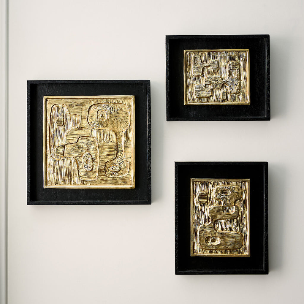 Meet our new brass Reform Art. Polished brass bas-reliefs inspired by our signature Reform pattern and made from ceramic models crafted in our Soho pottery studio. Each piece floats in an ebonized and wire-brushed mahogany shadow box. Available in three sizes.