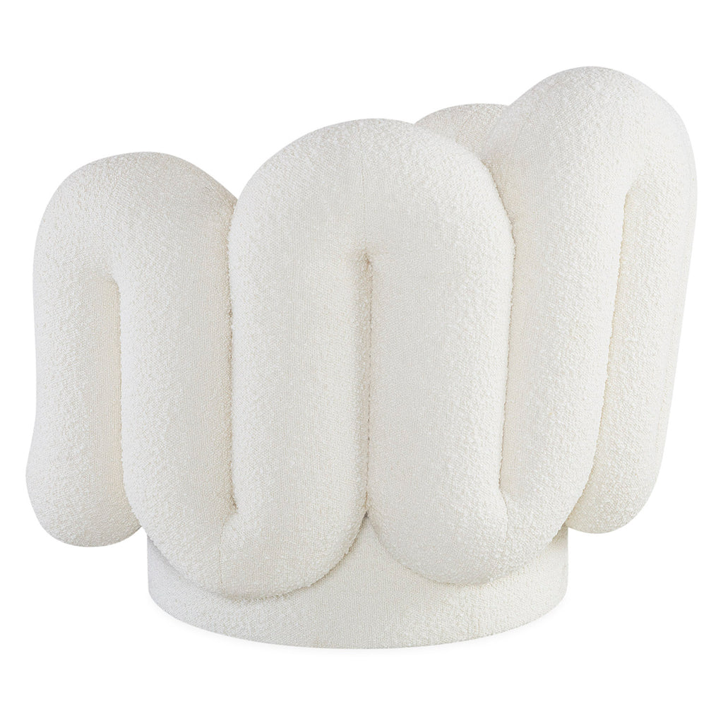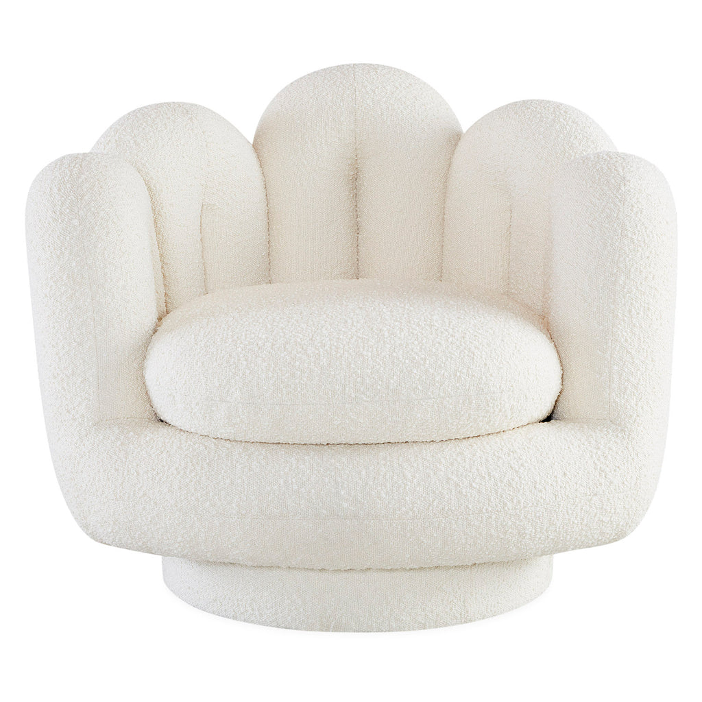 The Jonathan Adler ultra-mod Serpentine Swivel Chair features a thick and cushy seat cradled by an ultra-mod tube wrapped in our luxe Olympus Oatmeal bouclé. Perfect for floating in the room—swivel to show it off from every angle. Minimalist and modern but also enveloping and inviting, our Serpentine collection's big, bold curves are the shape du jour. A little 70s, a lot futuristic, and totally today.