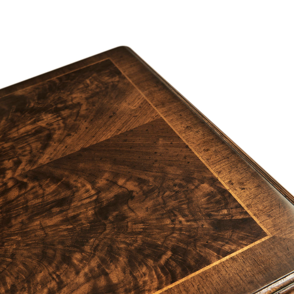 Chippendale gothic style rectangular lamp table with shallow carved ogee arches to the frieze and drawer front and clustered column base, inspired by designs of c.1770.