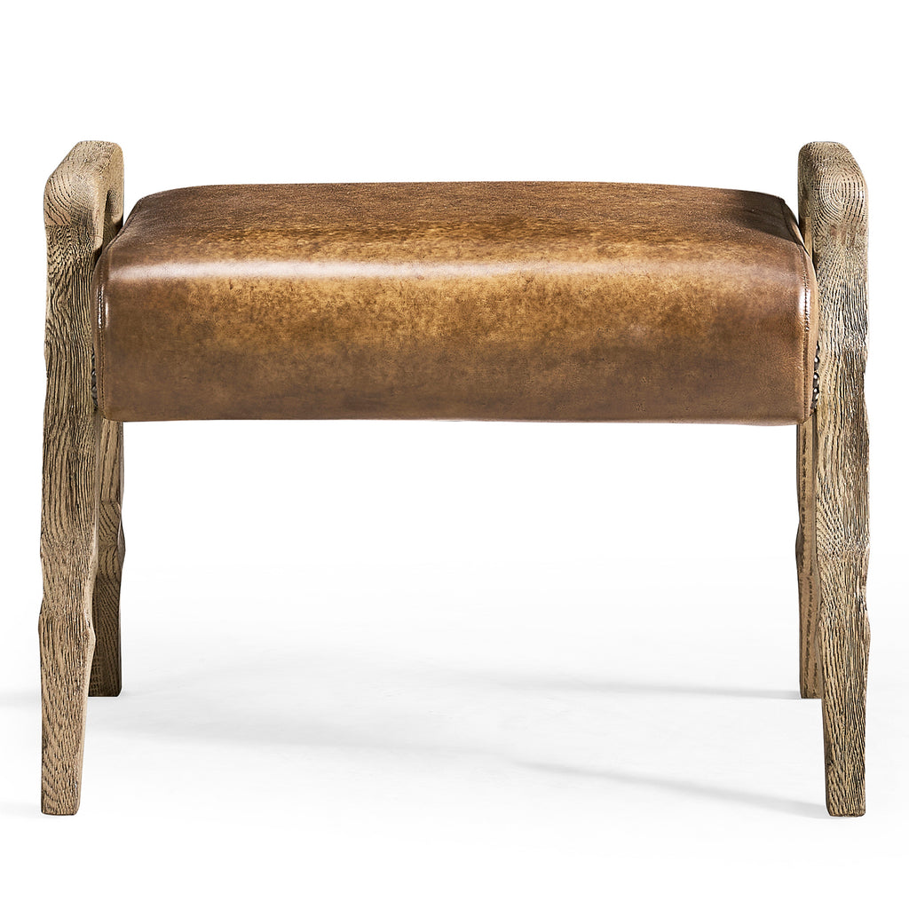 The Echo Canyon Footstool perfectly complements the Echo Canyon Occasional Chair, offering the same blend of rustic charm and refined craftsmanship. The Faded Oak frame echoes the warmth and character of the chair, while the hand-stained leather seat provides a luxurious resting place for your feet.CRAFTED FROM NATURAL HIDES, EACH PIECE FEATURES UNIQUE VARIATIONS IN PATTERN AND COLOR, ENSURING NO TWO ARE EXACTLY ALIKE. A ONE-OF-A-KIND STATEMENT OF AUTHENTICITY AND STYLE.