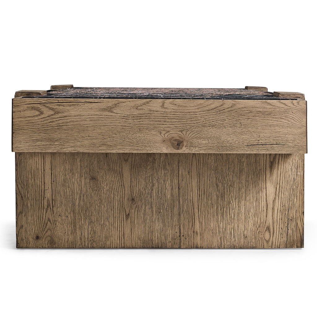 The Echo Canyon Cocktail Table features a beautifully crafted pedestal base in a faded oak frame, adding warmth and texture to the home. Its standout feature is a marble top made with a unique in-house technique, offering a dimensional stone surface that enhances the table's refined, natural aesthetic.