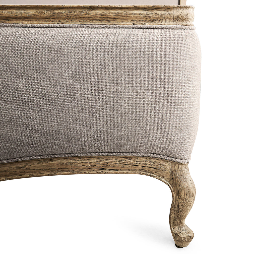 The Echo Canyon Bed is a beautifully crafted transitional piece that seamlessly blends classic elegance with modern comfort. Framed in oak with a rich faded oak finish, this bed showcases the artistry of antique wood finishing, enhancing its warmth and character. The sculpted silhouette of the headboard and footboard adds a graceful, refined touch, while the softly upholstered panels provide a layer of luxurious comfort. Delicate curves and cabriole-style legs further elevate its timeless appeal. Perfect for both traditional and contemporary interiors, the Echo Canyon Bed creates a serene and sophisticated focal point in any bedroom.
