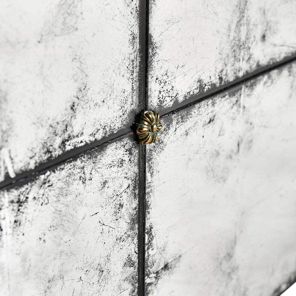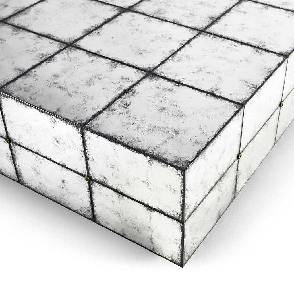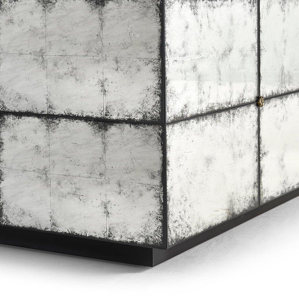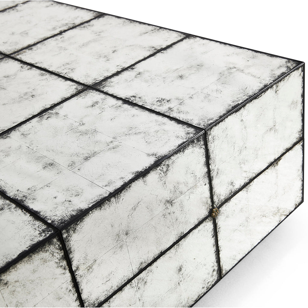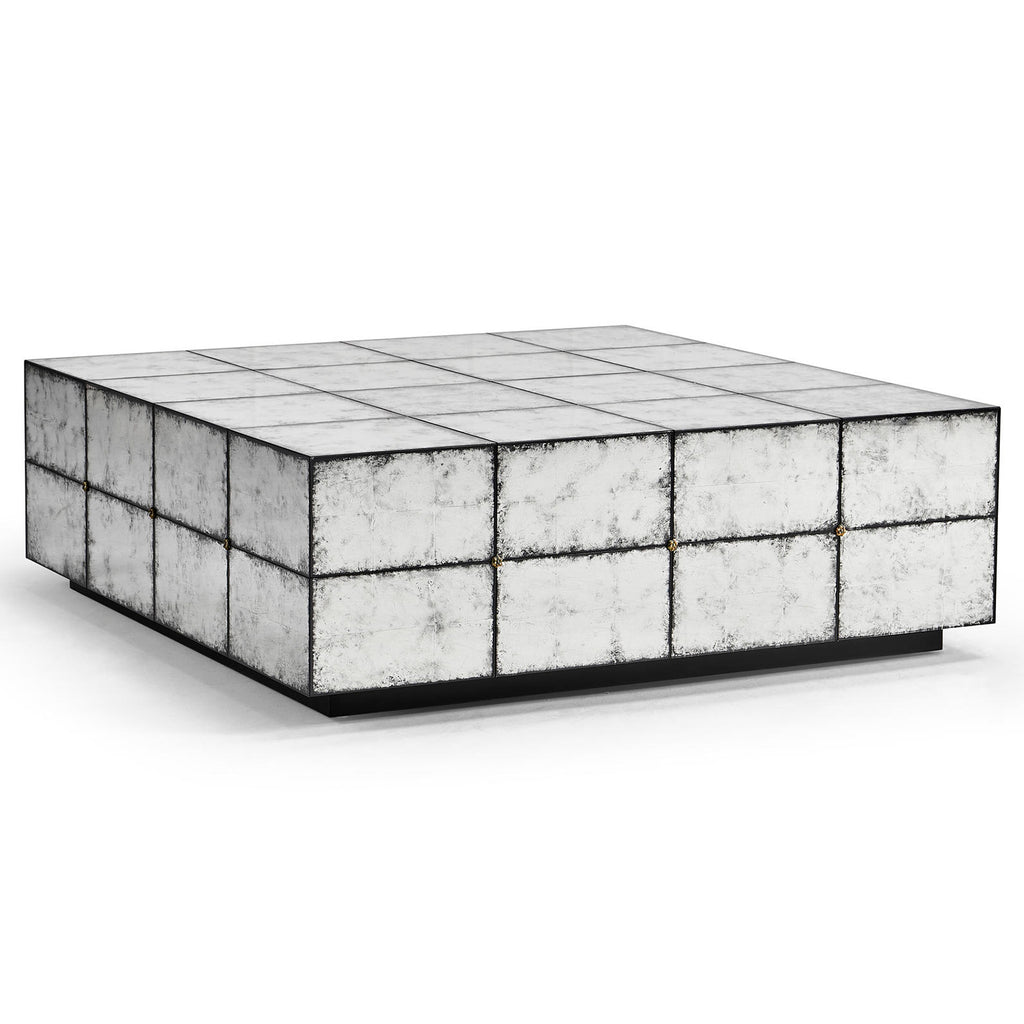With its exquisite materials, opulent details, and versatile design, the Jonathan Charles Luna Cocktail Table becomes a statement piece that seamlessly bridges the gap between classic elegance and captivating glamour. Crafted from hardwood solids and adorned with panels of antiqued eglomise glass on all sides, this table exudes an air of luxury and timeless beauty, while capturing light and reflecting a sense of refinement. The side panels of the table feature cast brass floral accents, adding a delicate yet impactful element of charm.