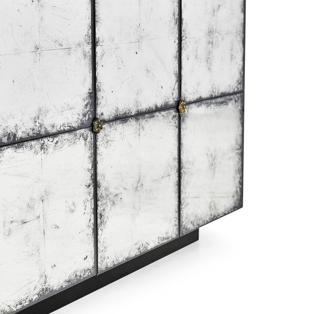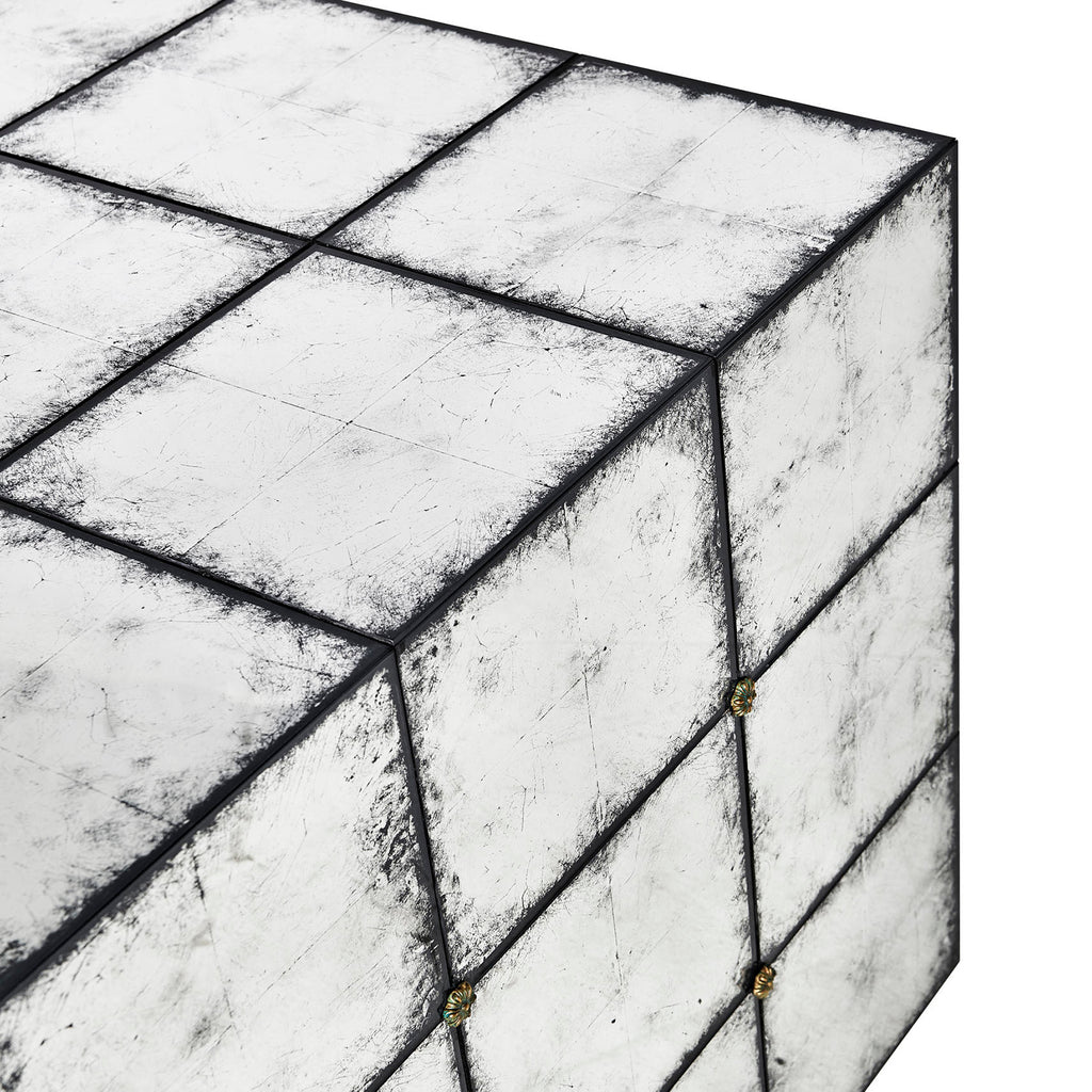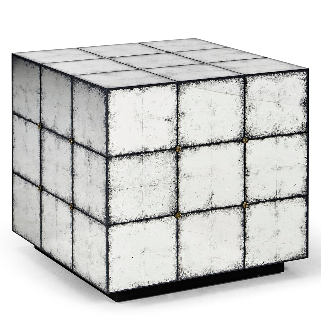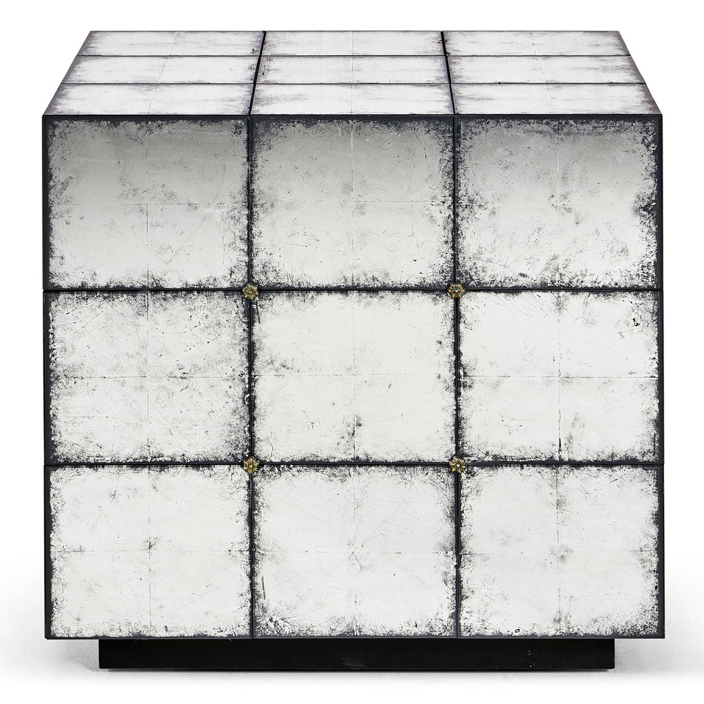 With its exquisite materials, opulent details, and versatile design, the Jonathan Charles Luna End Table becomes a statement piece that seamlessly bridges the gap between classic elegance and captivating glamour. Crafted from hardwood solids and adorned with panels of antiqued eglomise glass on all sides, this table exudes an air of luxury and timeless beauty, while capturing light and reflecting a sense of refinement. The side panels of the table feature cast brass floral accents, adding a delicate yet impactful element of charm.