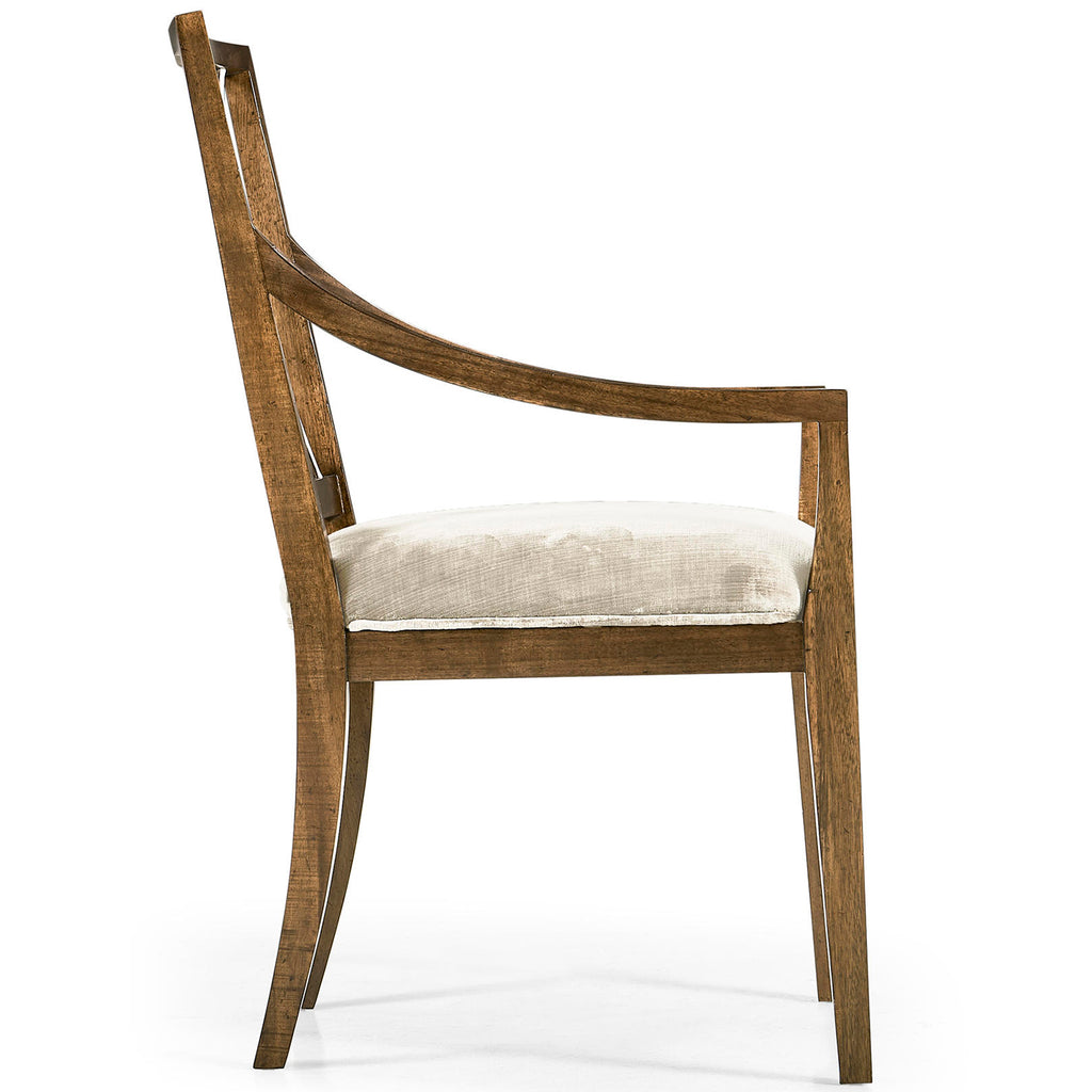 More than just a piece of furniture, the Osborne Arm Chair is a symbol of tradition, craftsmanship, and the enduring beauty of classic design. Designed in a classic shield back style, this chair pays homage to the elegance of the past, adding a touch of regal charm to your living space. The white eggshell inlay on the inside and outside back of the chair is a stunning example of intricate craftsmanship. The chair's seat is upholstered in a neutral performance fabric, offering both comfort and style. The fabric not only complements the chair's rich mahogany finish but also serves as a canvas for your personal decorative touch.