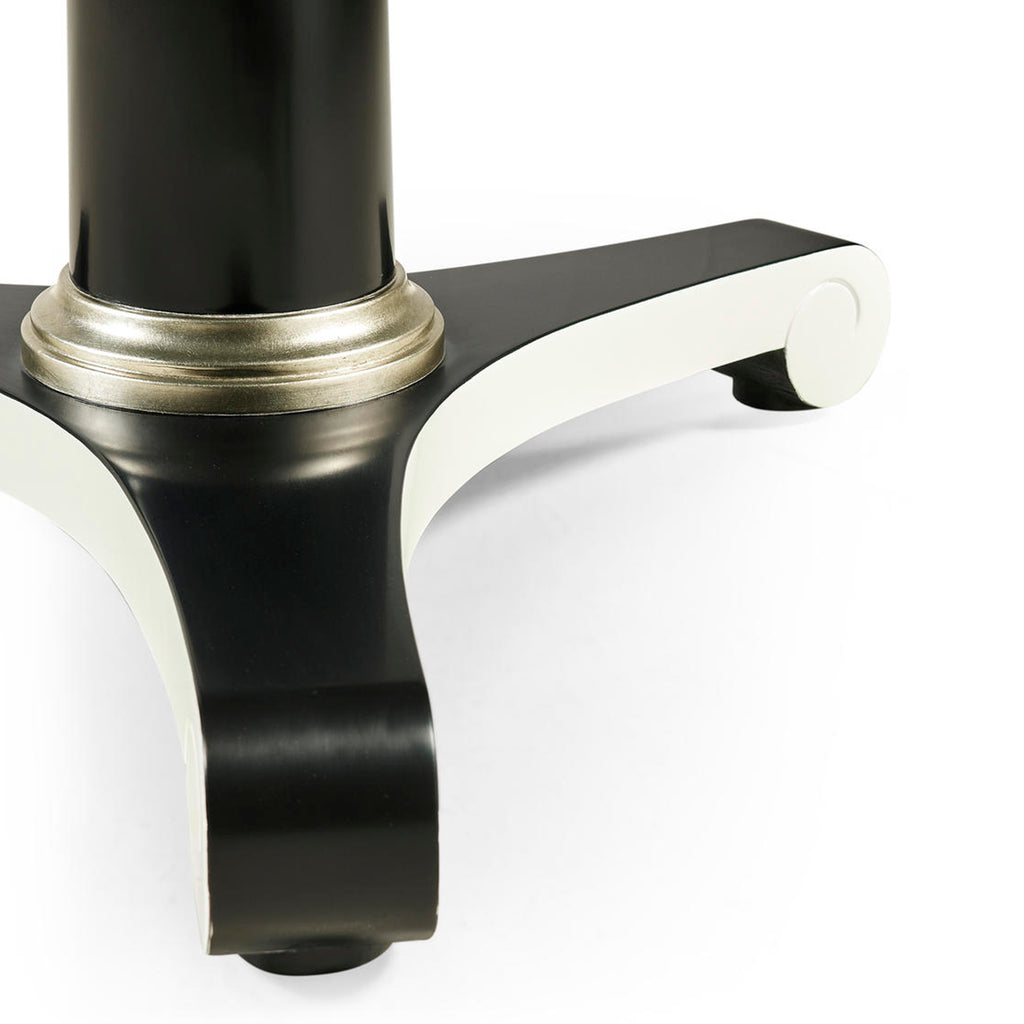 Inspired by the Biedermeier era, Dipole’s clean lines, classic vibes and versatility make it suitable for a variety of settings - dining, foyer, office or living. Bold black and white lines are accented with silverleaf collars for the perfect amount of understated drama that compliments an array of styles.