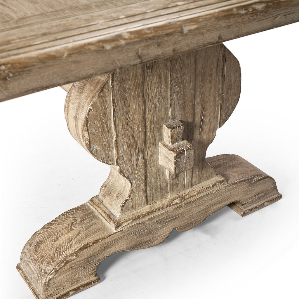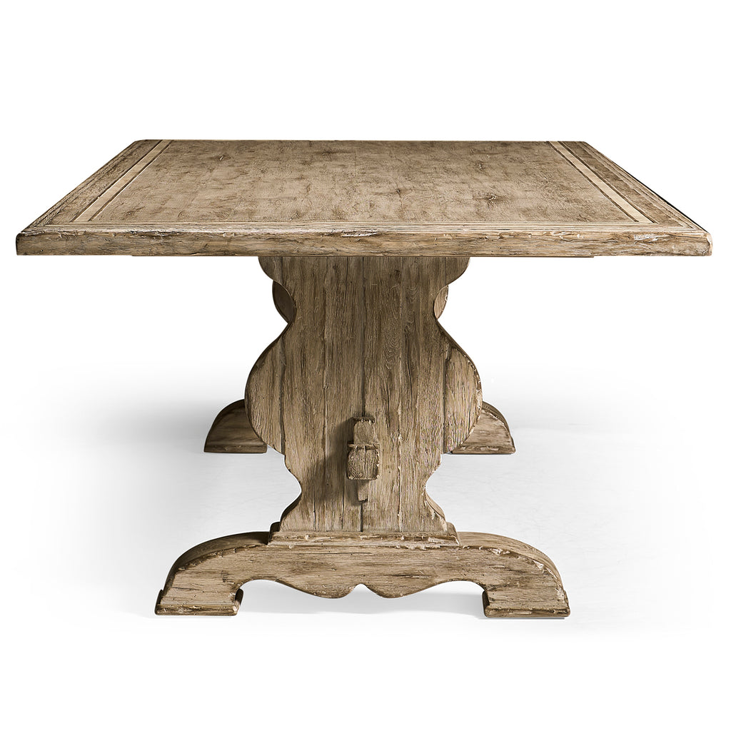 The Sagehill Rectangular Table is a masterful blend of classic design and exceptional craftsmanship. Measuring 124 inches, this stunning double pedestal base table features a weathered oak finish with a delicate glaze overlay, adding remarkable dimension and depth to its surface. This finishing technique enhances the natural beauty of the wood, giving the table a distinctive character. The Sagehill Rectangular Table seats up to 8 people for your next family gathering or dinner party.