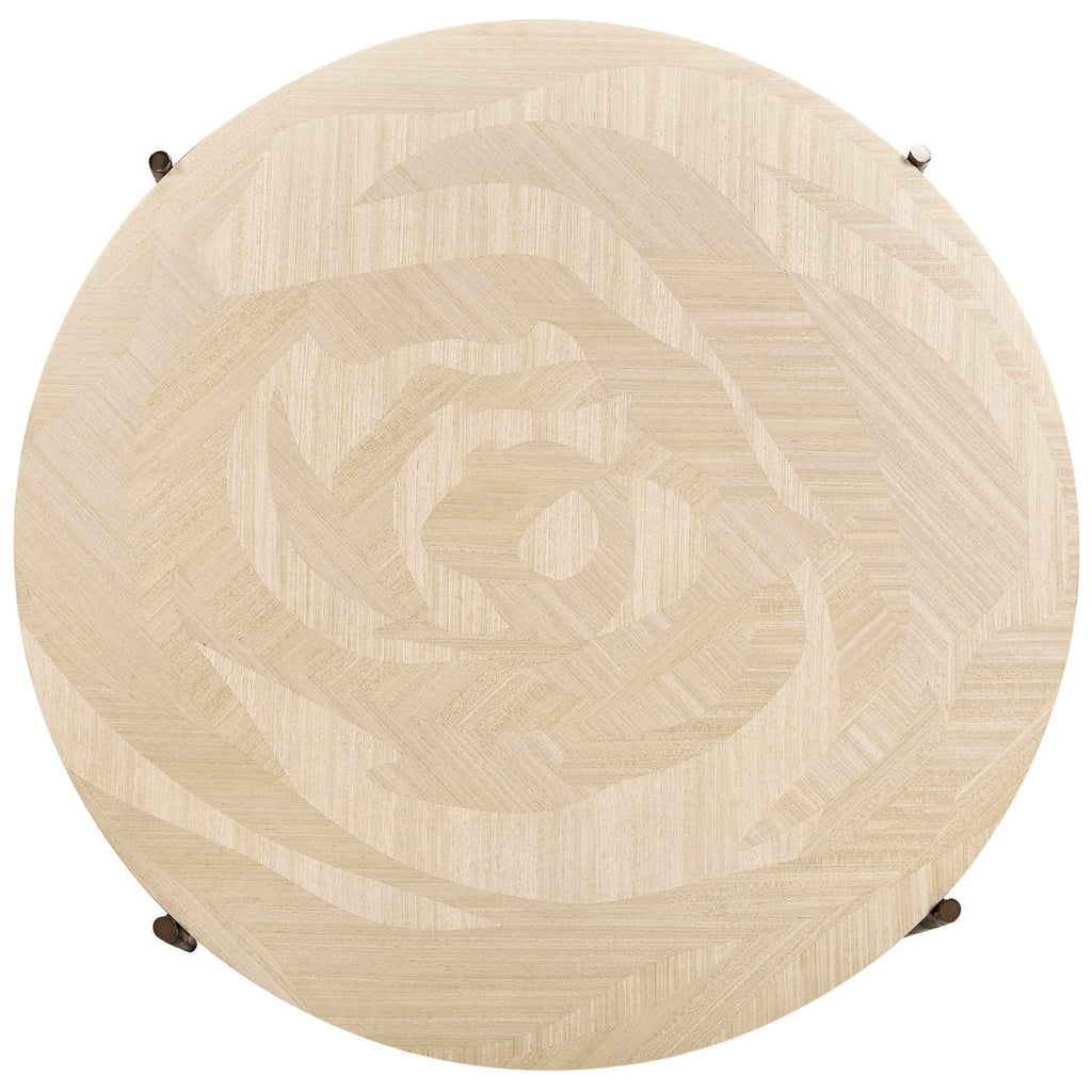 The Tidepool Round Cocktail Table is a captivating piece bringing serene beauty into your living space. The table top is stunning Koto veneer marquetry, meticulously arranged in circular motifs that mimic the intricate formations of a tidepool. The natural grain and rich tones of the Koto veneer add depth and warmth to the design, creating a focal point that captures the imagination and invites relaxation. Complimenting the movement of the table top is a wax-cast stainless steel base with hints of texture. Elevate your living space with the tranquil allure of Tidepool.