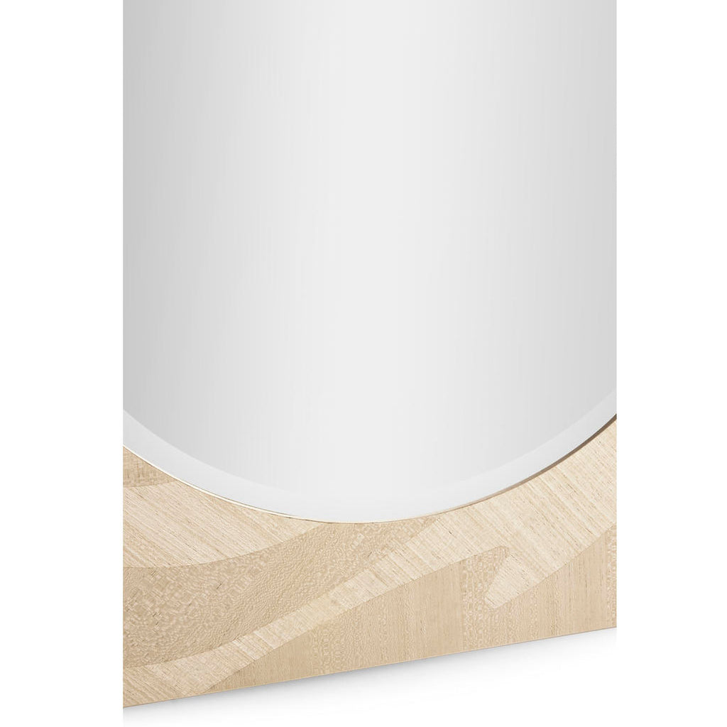 The Tidepool Square Mirror is mesmerizing with it's stunning Koto veneer marquetry, meticulously arranged in circular motifs that mimic the intricate formations of a tidepool. The natural grain and rich tones of the Koto veneer add depth and warmth to the design, creating a focal point that captures the imagination and invites relaxation.