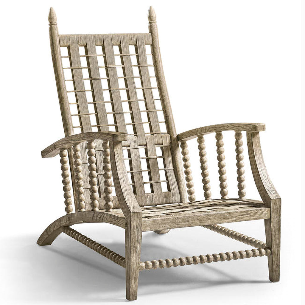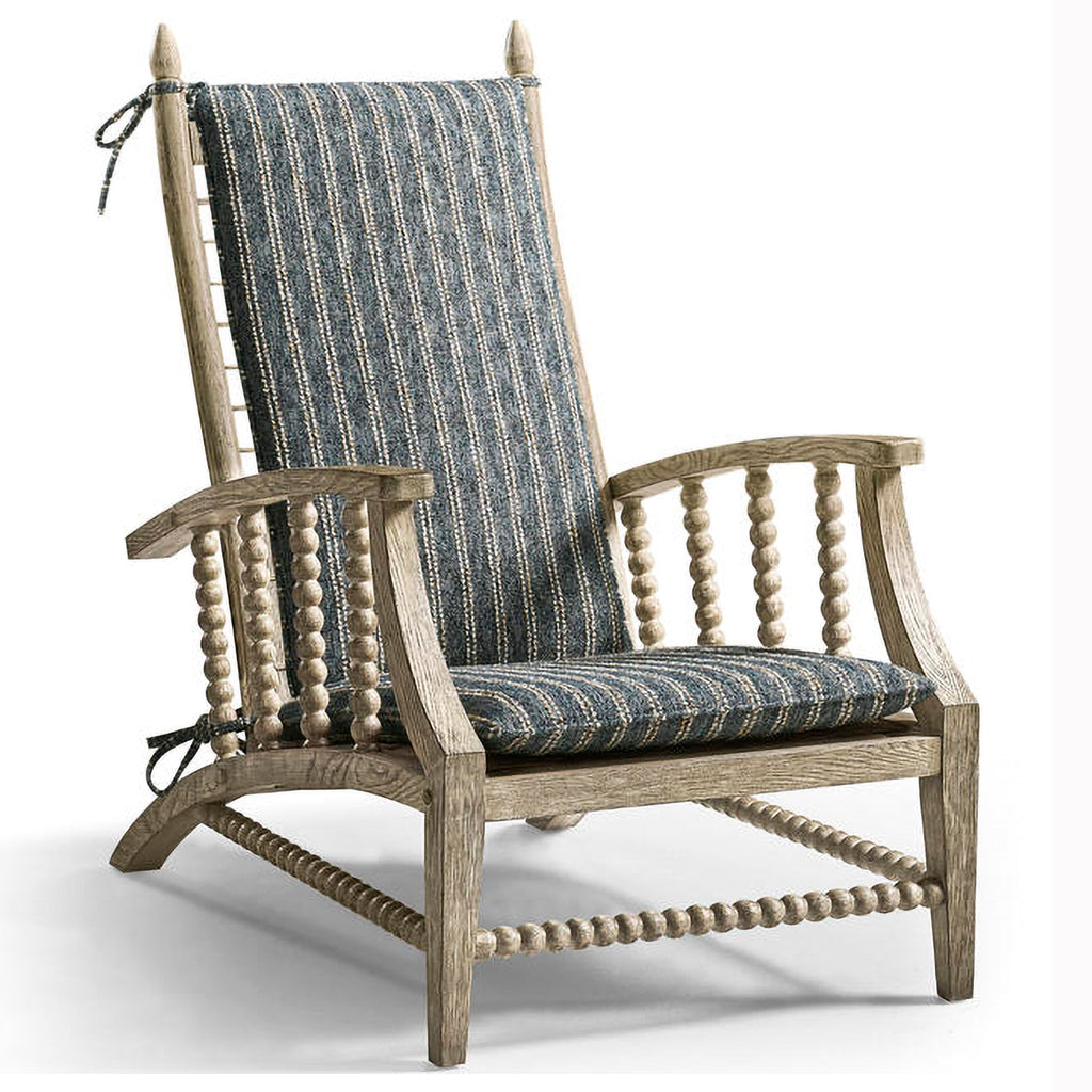 Inspired by the grand British seaside guesthouses of yesteryear where elegant recliner chairs would be lined up in conservatories for those ‘taking’ the sea air. The elegantly shaped and sloped form makes for a great occasional chair that would look as perfect in a living room as it would in a bedroom or conservatory. Perfectly finished in greyed oak with beautiful carved detailing.