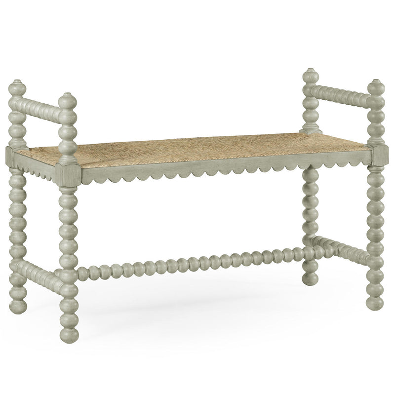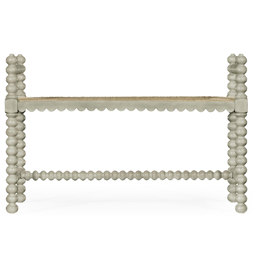 Jonathan Charles William Yeoward Bellingham single bench constructed of acacia and finished in a country gray with a fine rush seat is perfect at the foot of a bed. Taken from a family piece, this bench and the double version has many uses. Great in front of the sofa and also in the hall or even on a landing.