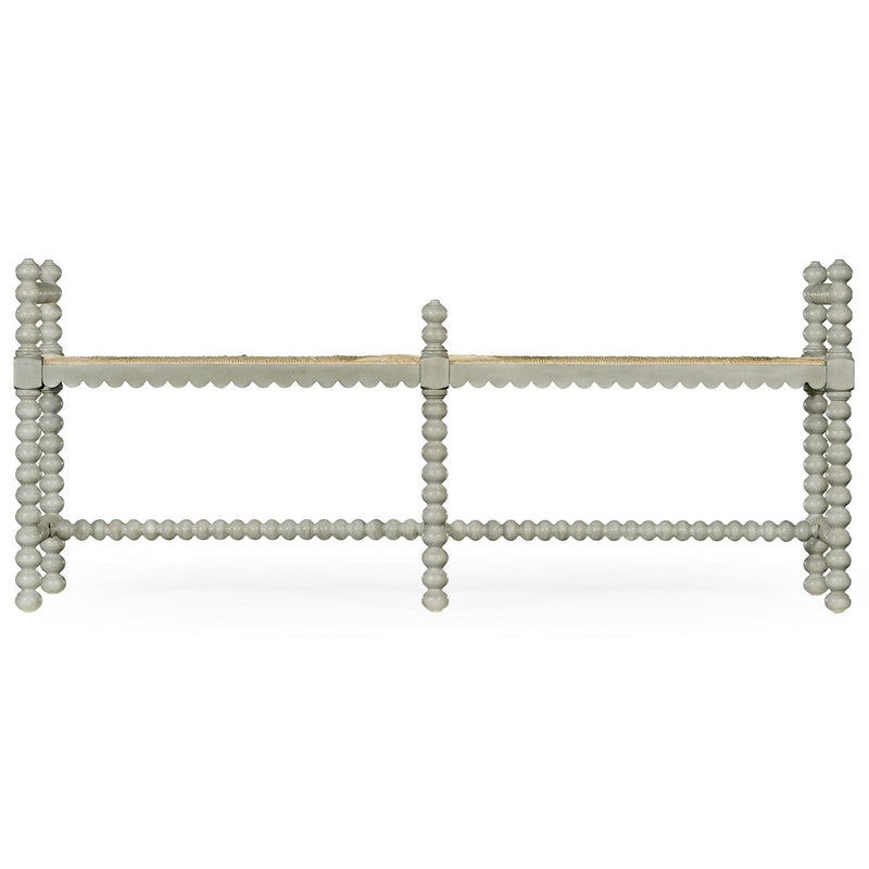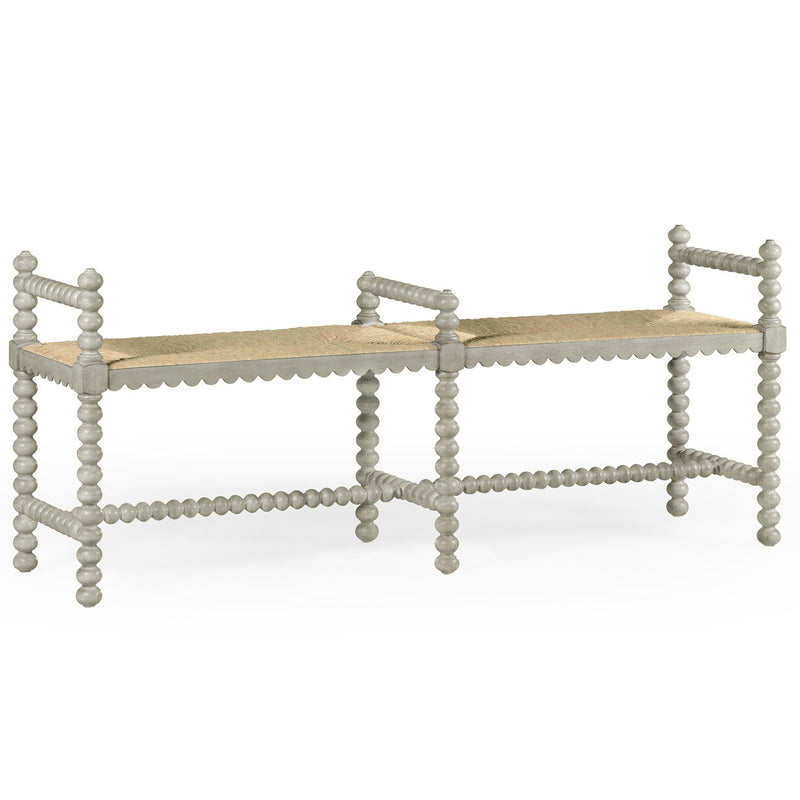 The Jonathan Charles William Yeoward Bellingham double bench constructed of acacia and finished in a country gray with a fine rush seat is perfect at the foot of a bed. Taken from a family piece, this bench and the single version has many uses. Great in front of the sofa and also in the hall or even on a landing.