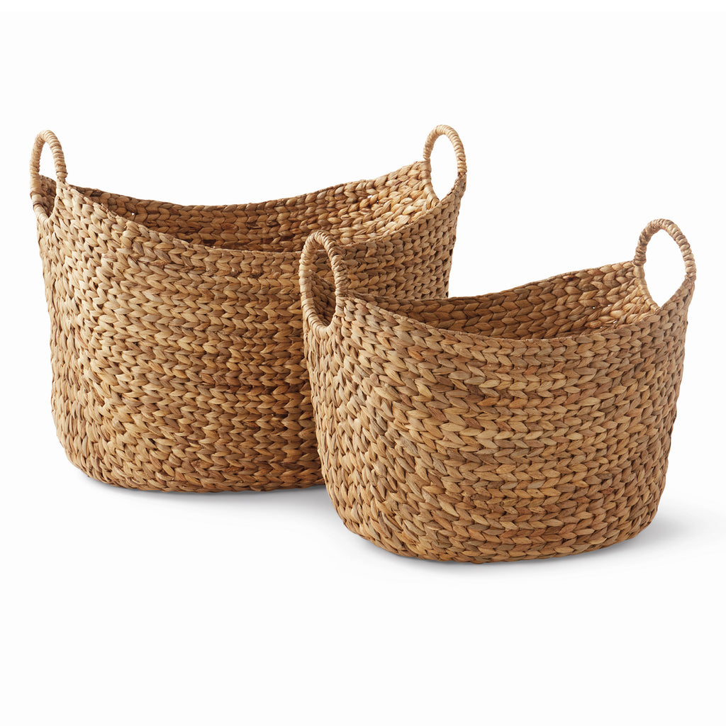 The classic statement baskets with handles made out of woven water hyacinth. Abundantly grown and sustainably harvested, what a refreshing take! This large scale woven set is a beautiful way to store your favorite books or even linens.