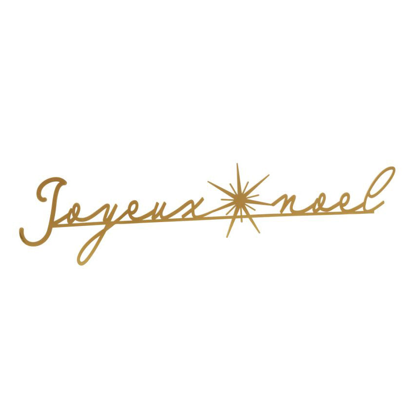 Offer a merry French greeting on a shelf or mantle with the Joyeux Noel Mantlepiece. Featuring script lettering, a gold finish & a center starburst, this is a festive accent as a standalone piece or layered with garland, greenery, or twinkle lights.