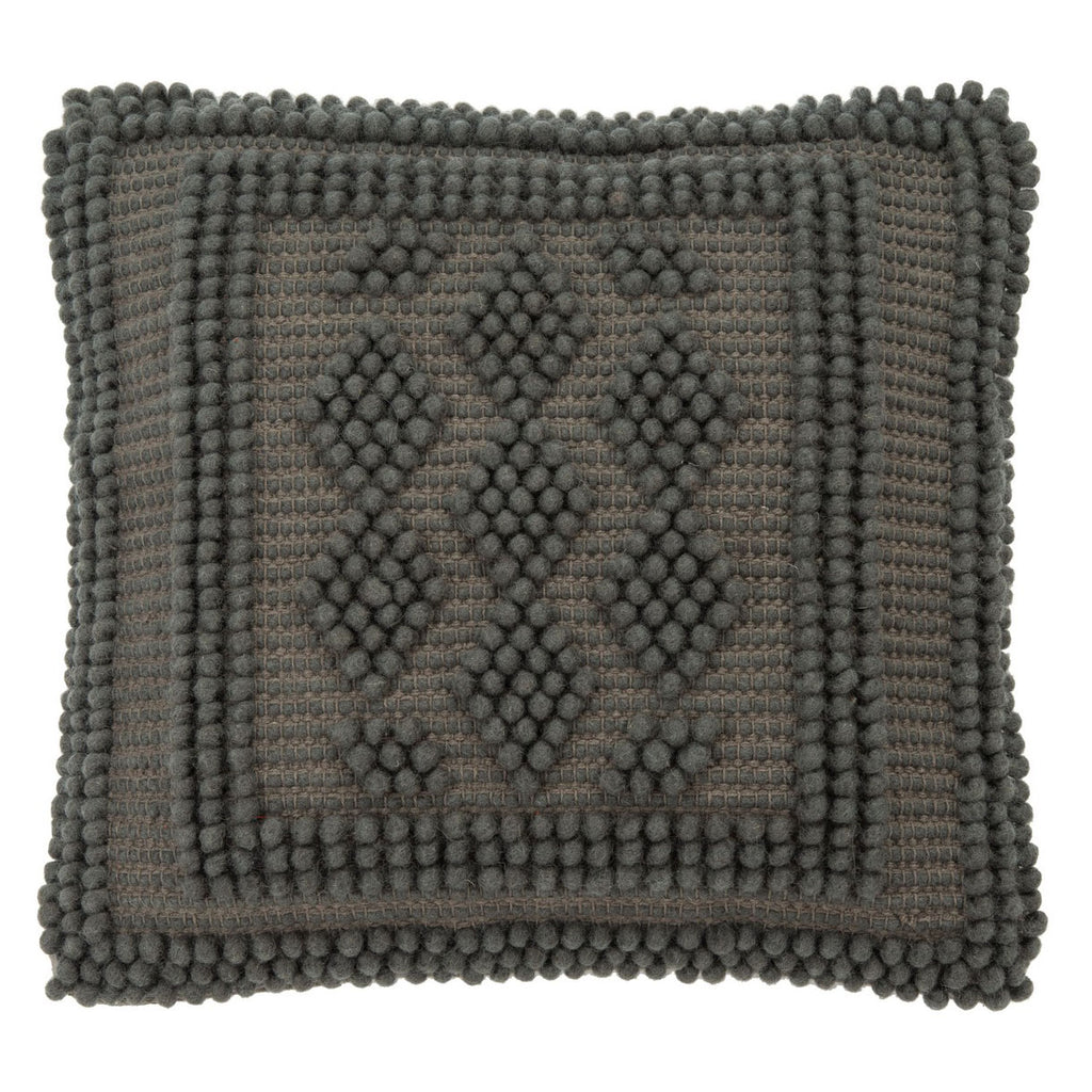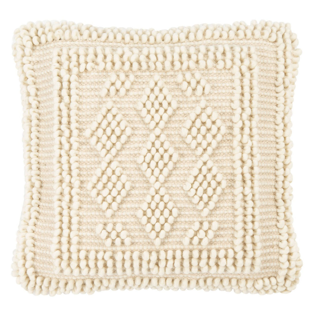 Modeled after the cozy warmth of vintage cardigans, this Judson Frame Throw Pillow is the ideal finishing touch for any classic-contemporary or boho-chic décor. Wool-cotton blend yarns are expertly knit displaying timeless diamond motifs in raised puff stitches, making Judson a celebration of modern fiber art.