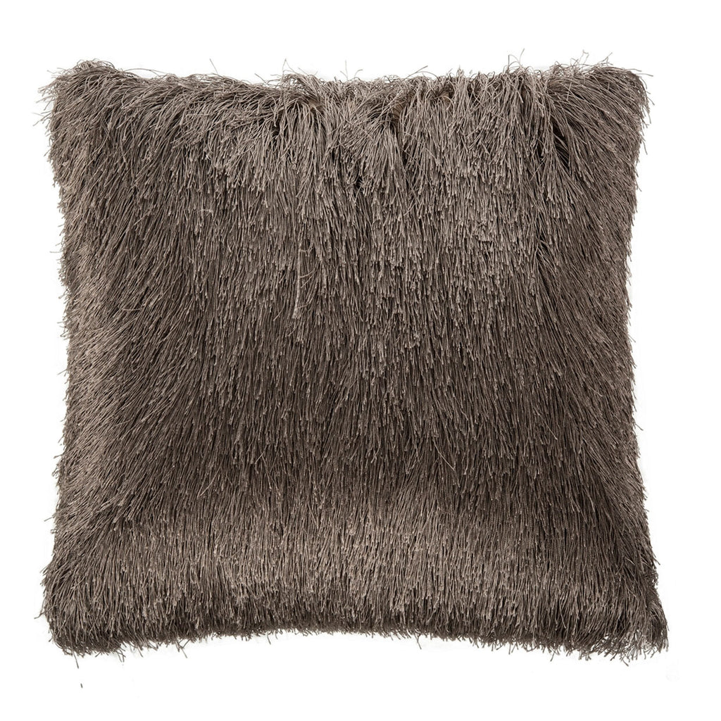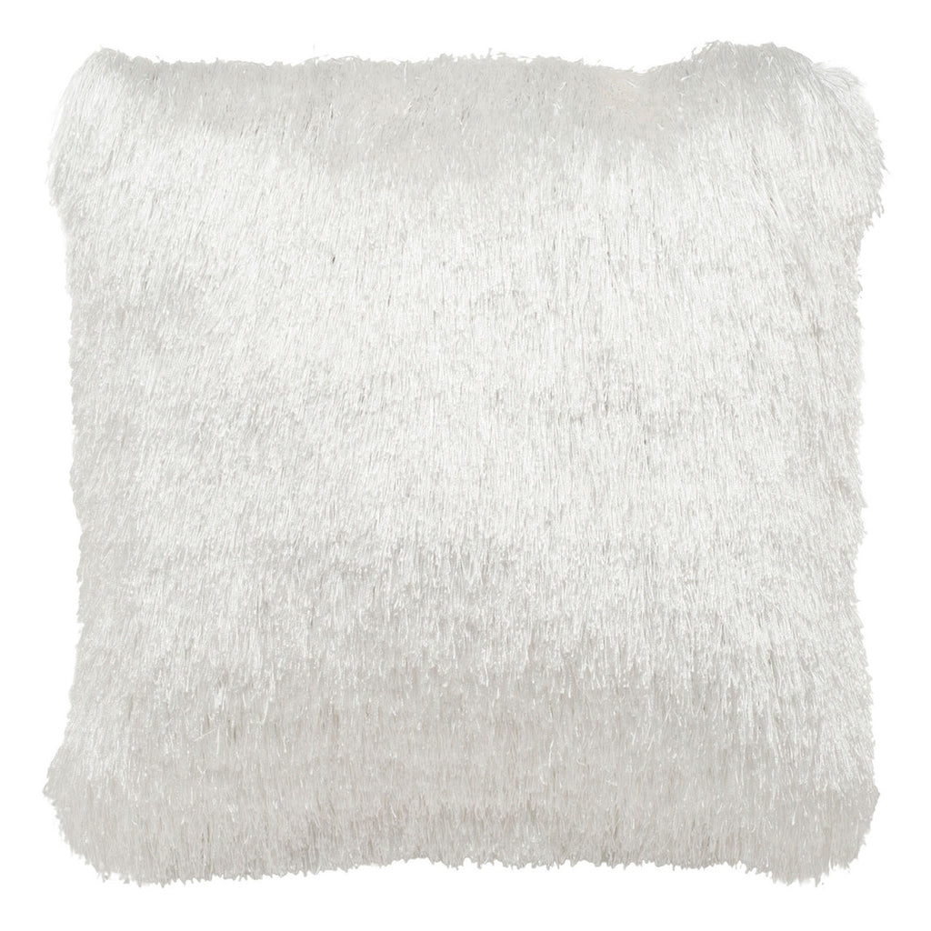 When the fashionably fabulous look of shag is paired with all-weather sensibilities the results is the incredibly durable and decorative indoor/outdoor throw pillow. This decor-smart accent accessory is made using soft, versatile synthetic yarns in a shimmering shag pile and colored in lustrous pearl for a retro-chic look that will stand up beautifully to the elements. A hidden zipper on the solid colored back of this sexy throw pillow makes for convenient access and easy-care cleaning.