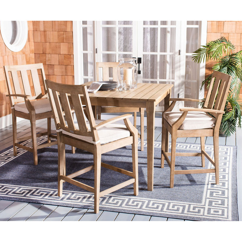This patio bar table inspires all to gather round and celebrate life’s luxuries. Inspired by the al fresco furnishings of coastal cafes, this solid outdoor bar table is made of natural eucalyptus with ample room for sitting on bar stools or standing round and regaling friends with tall tales.