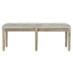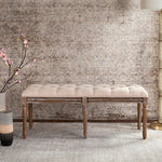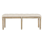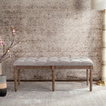 Designed for those who embrace the luxury of fine craftsmanship, this traditional wood bench was inspired by the opulent Old World style furnishings of French royal residences. Outfitted in tufted neutral beige or grey velvet upholstery, it brings ambiance to any room.
