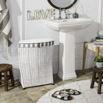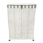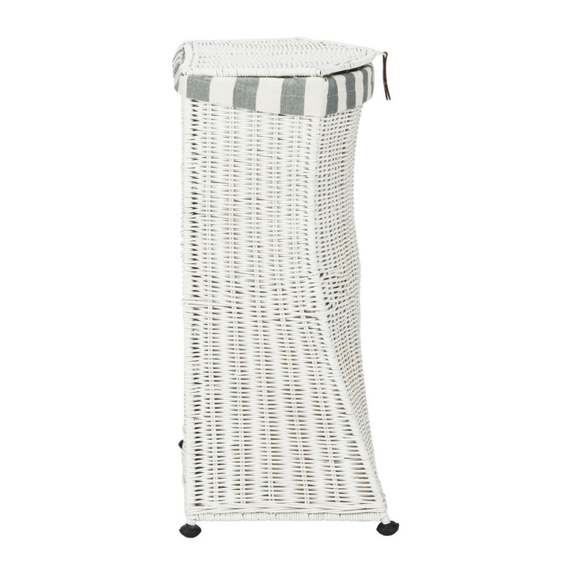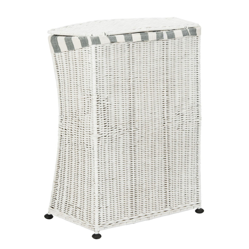 Designed with clean lines and minimalist style, this rattan laundry basket instantly refreshes any laundry room. Its contemporary white-wash finish and gentle curves are paired with a chic striped lining and flip-top lid that keeps contents discreet.