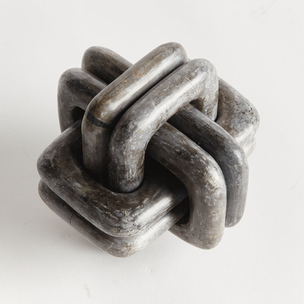 Honed to a semi-matte finish, this stunning marble is particularly known for its unique dark brown to light brown broad lines. The clay minerals found in this type of marble are what gives our knot sculpture its stunning unique brown veining. A beautiful accent atop home office desk, bookshelf or entry console.