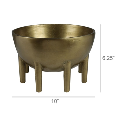 Eight slender legs elevate this cast aluminum bowl to contemporary heights.