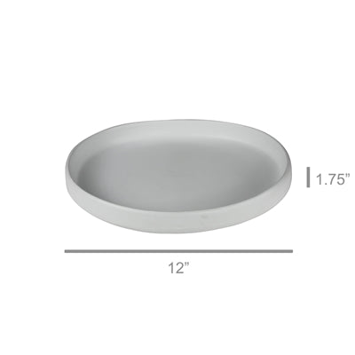 Slightly oblong with a hint of an organic edge this platter is crafted of ceramic with a matte white glaze. The grand scale features the food it presents as almost an art form. Dishwasher safe.