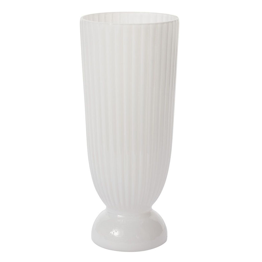 From celebratory occasions to everyday use, the versatile Kyandi Vase with its vintage hue & silhouette is stunning with fresh or dried florals. Handmade from white opaque glass with ribbed detailing, this vase makes a classy accent & centerpiece.