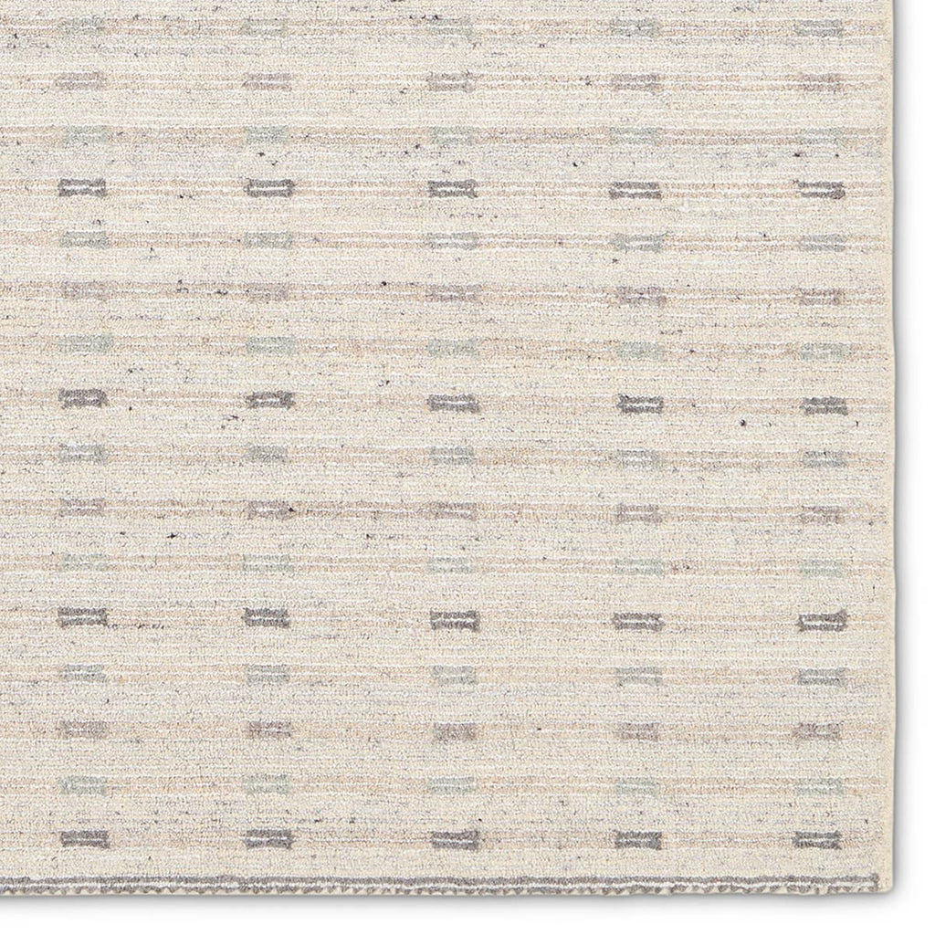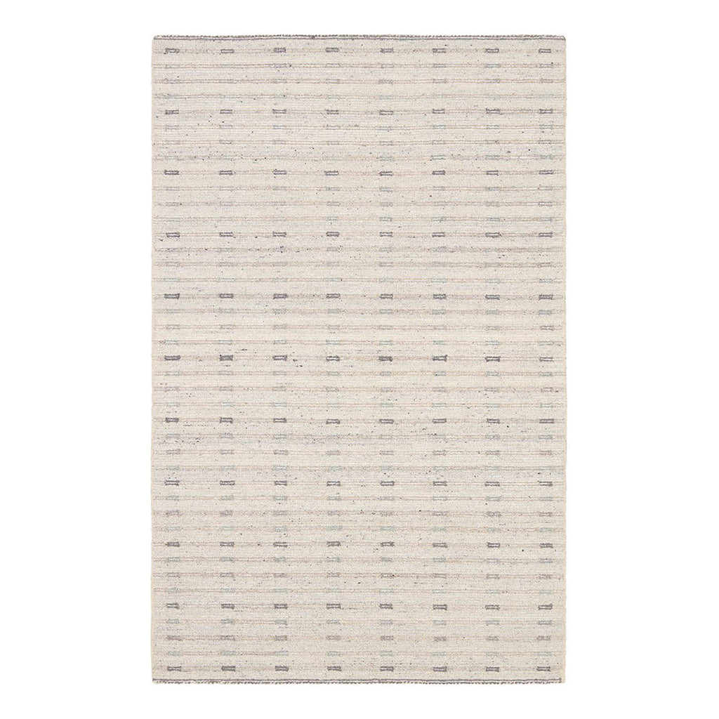 100% hand-looped wool yarns of cream and taupe artfully mingle with shades of weathered gray and green. Laisse faire stripes encourage the eye to travel the faintly global inspired, hand-tufted construction.