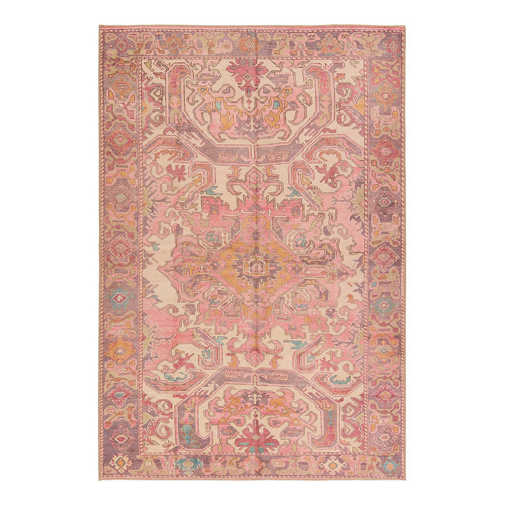 Inspired by coveted vintage finds, the Jaipur Living Garcia collection emulates the well-worn details and the beautiful abrash nature of antique textiles. The Elanor design showcases a center medallion and intricate border with floral details throughout. Pink and purple hues dominate this rug with gold, cream, light blue, and sage accent colors that create an intriguing and vivid addition to any home. Distressing adds dimension to the Turkish, traditional style. In Turkey, this digital design is printed onto the 1/5th inch thick, polyester base, cut, and embellished with edge stitching for a finished look. Up to four times machine washable, this printed accent piece provides a durable quality that cleans up effortlessly while withstanding heavy traffic, children, and pets.