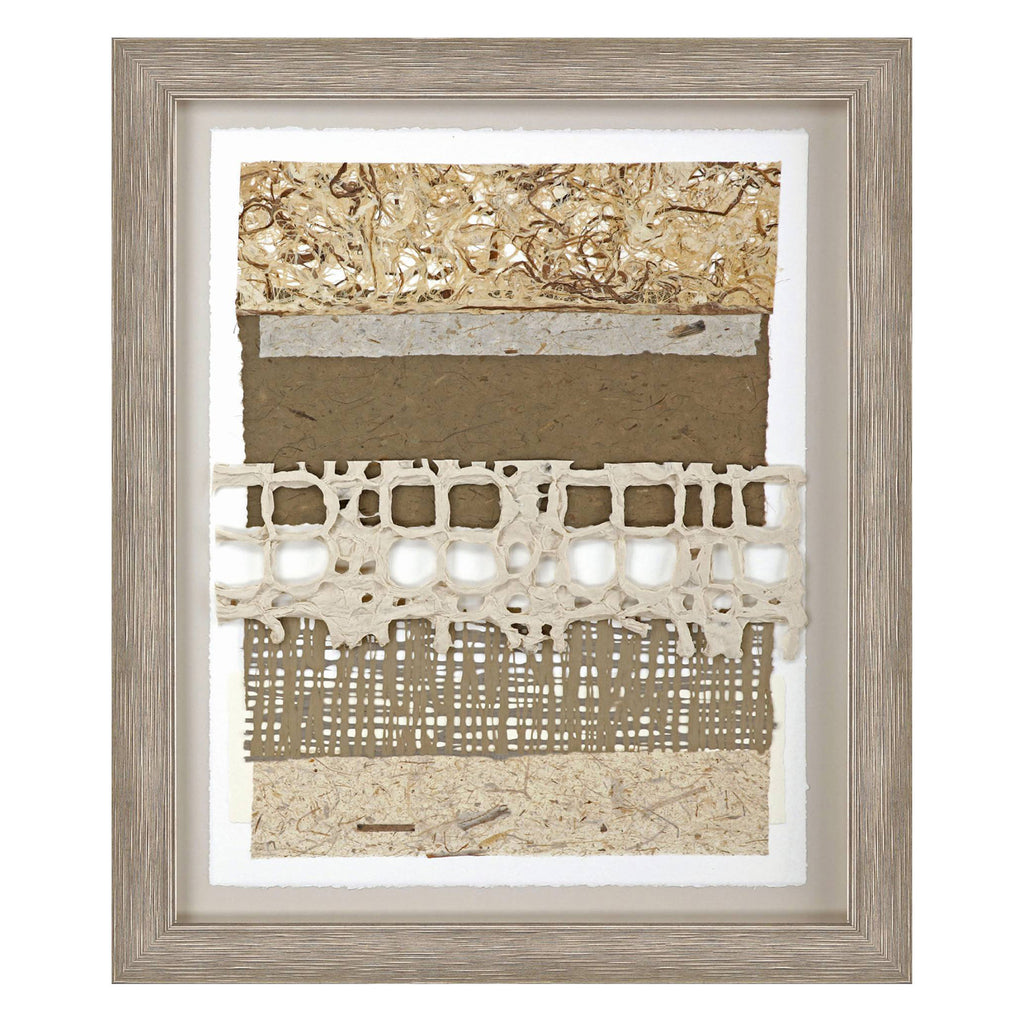 Exclusive mixed media. Framed in a distressed silver finish moulding.