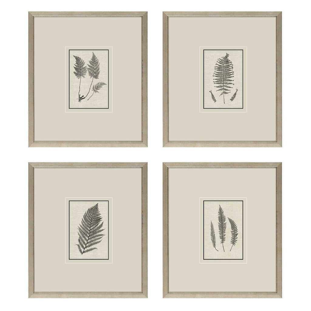 Brown and beige ferns are matted in oyster. Framed in a sleek champagne gold wood.